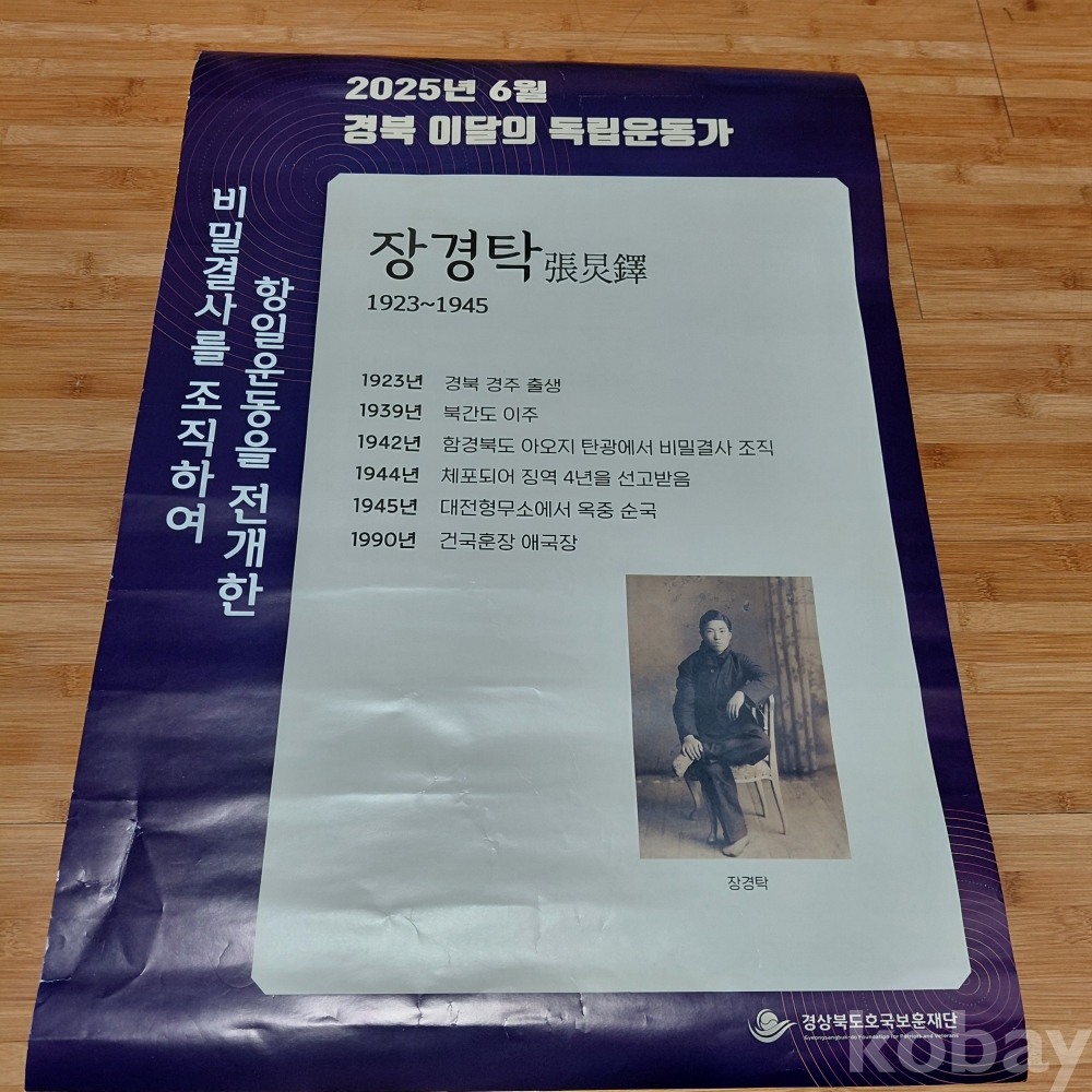 경북 이달의 독립운동가 장경탁 홍보대형 포스터 올려드립니다
