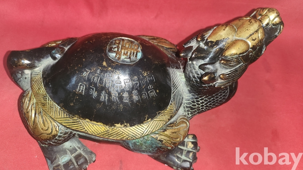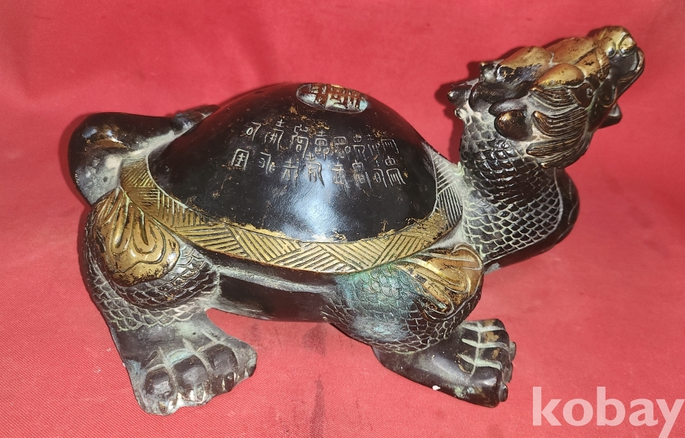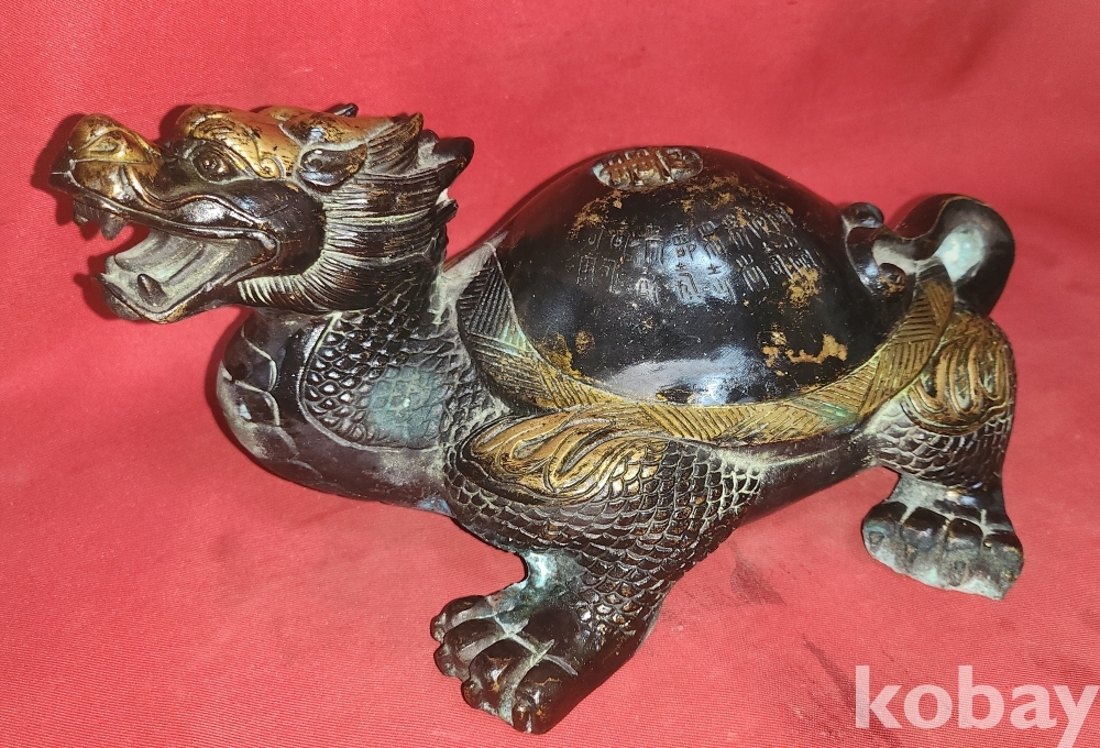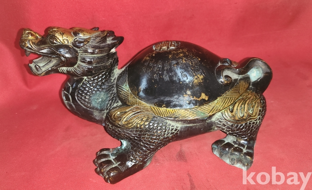 청동으로 완성된 수(壽)문양 크기가 큰 용거북이입니다,