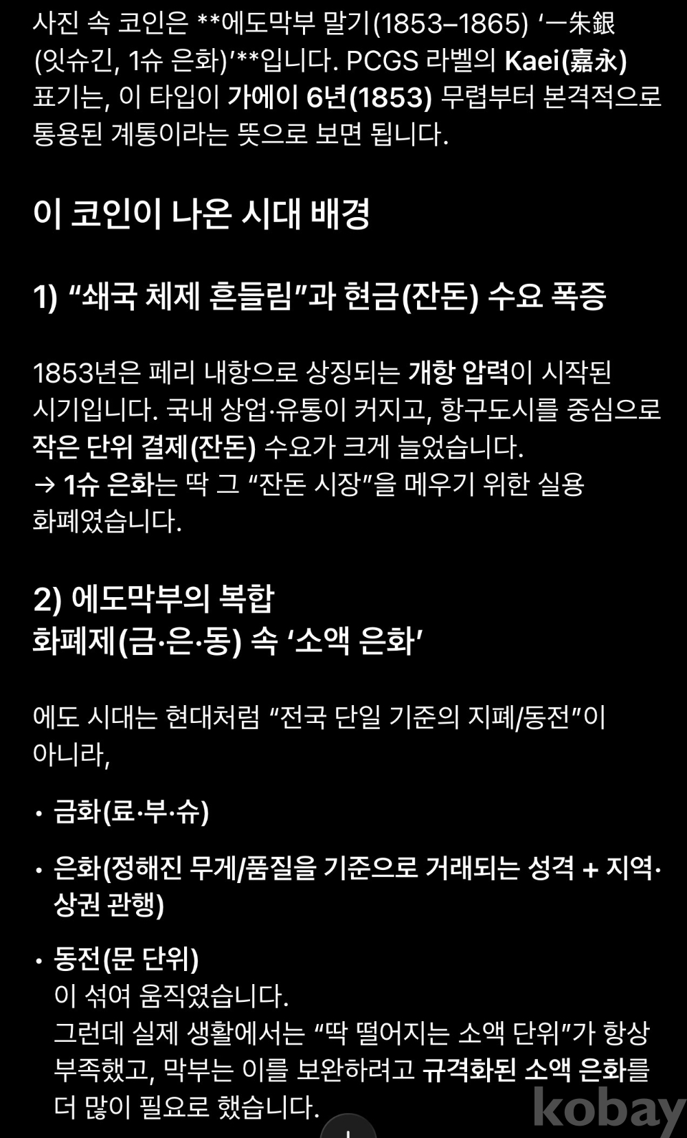 [근대 은화3] 1853년 에도 시대 “일주은(잇슈긴)” PCGS AU 58