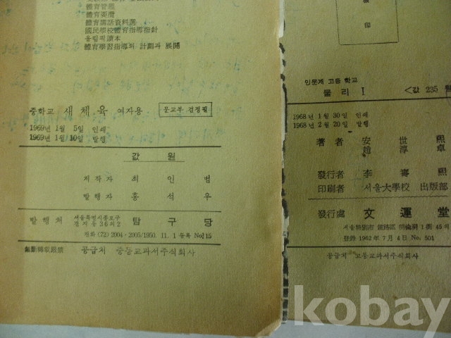(인문고) 물리 1(1968년), (중학) 새체육, 여자 (1969년) - 2권일괄