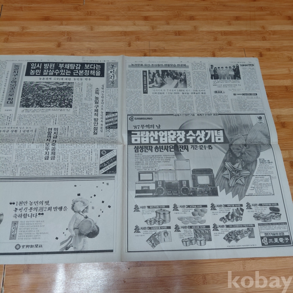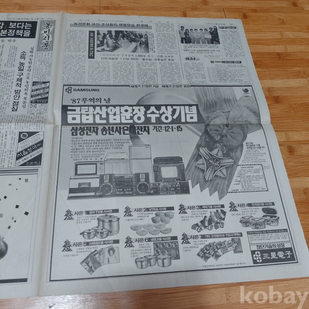 삼성전자 87무역의날 금탑산업훈장수상기념 송년사은대잔치 광고 농민신문 87년12월5일 올려드립니다