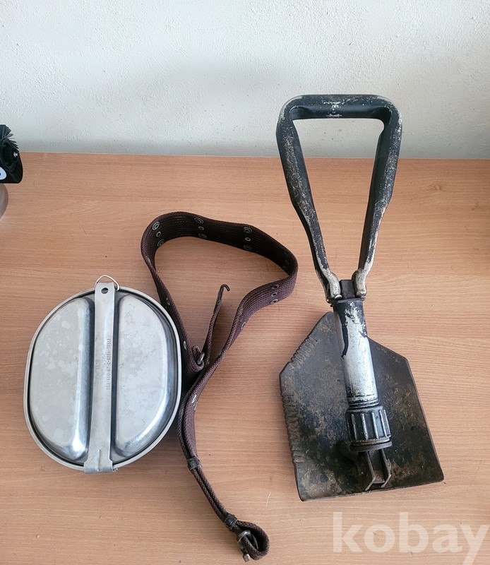 오래된 군용 식기밎 허리밸트 와 야전삽---------------3점 입니다