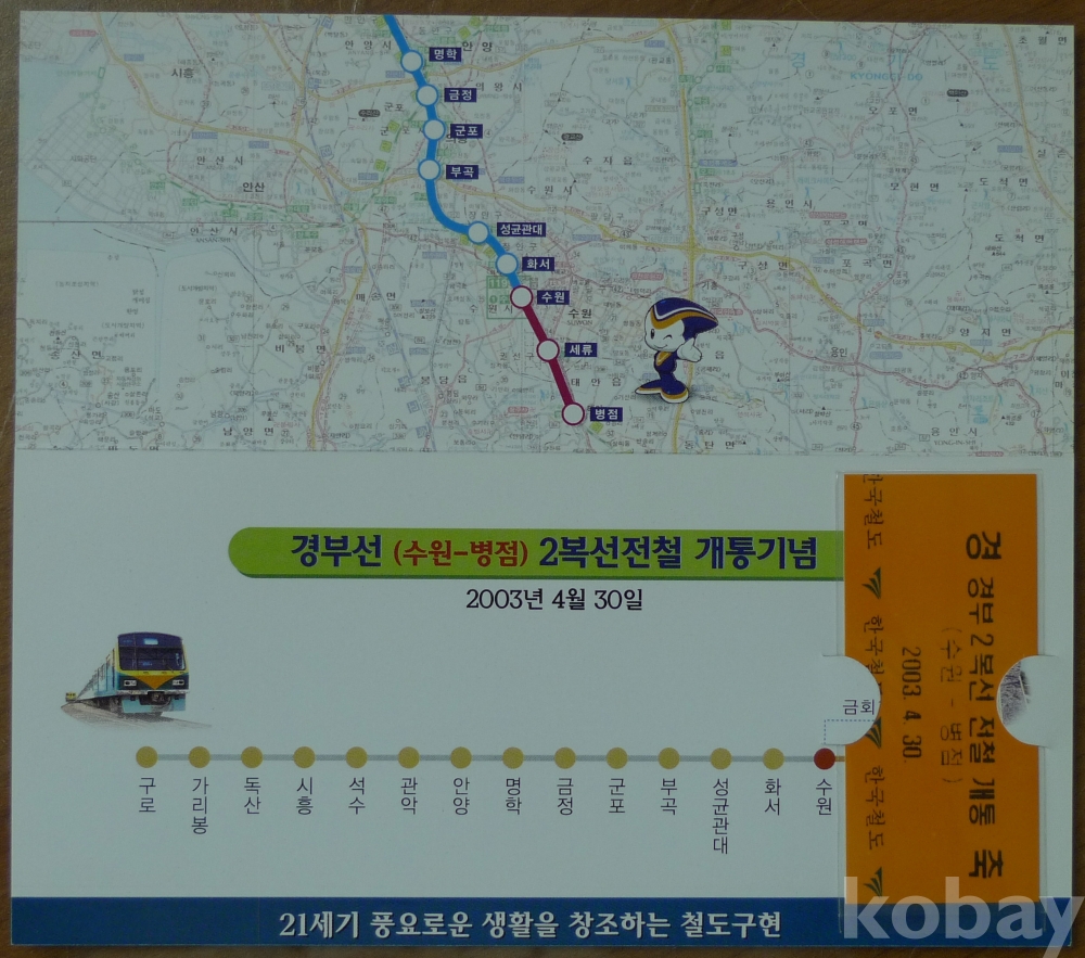 2003년 경부선(수원 - 병점) 2복선 전철 개통 기념 승차권