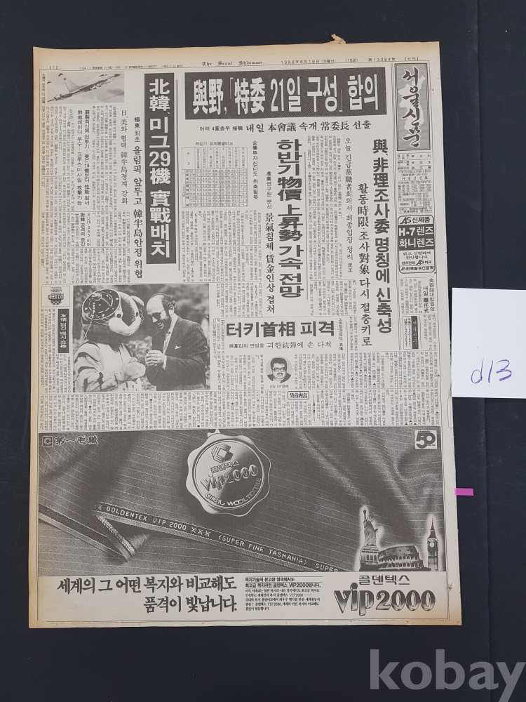 **** 1988.06.19(서울신문)/제일모직 골덴텍스 광고포함/약 16면