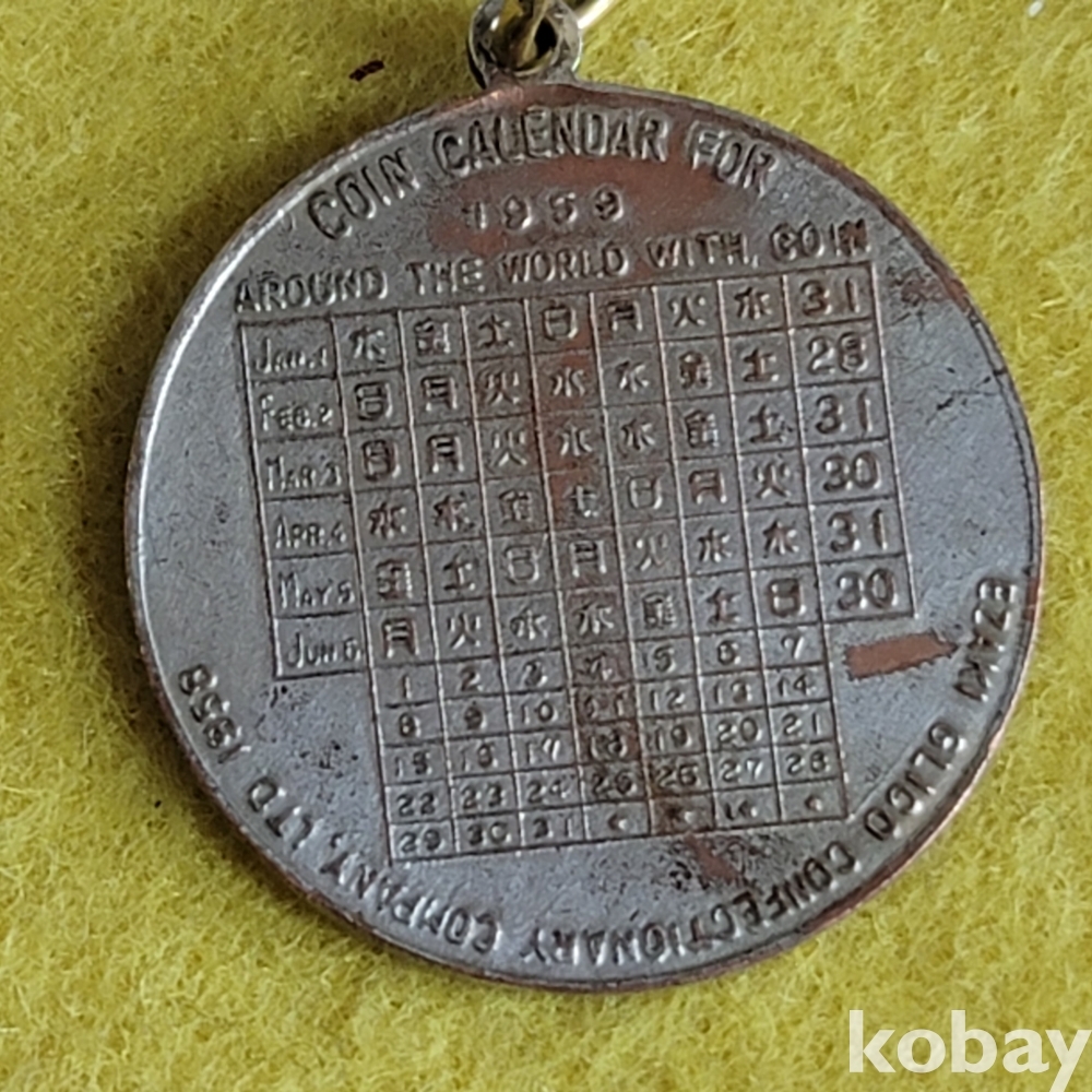 (((키홀더/키링/열쇠고리/가방고리))) 빅토리아여왕모습 양각 1959년 COIN CALENDAR 금속 키홀더