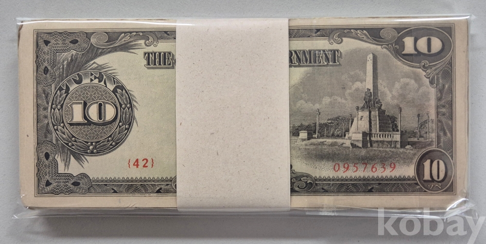 - 태평양 전쟁 일본 군표 10페소 필리핀 사용 약 100장 다발- 군용 수표