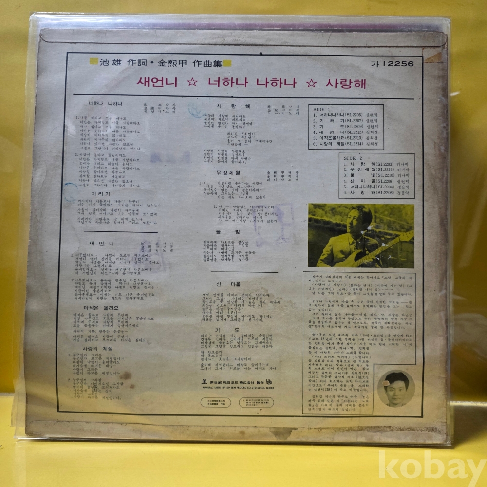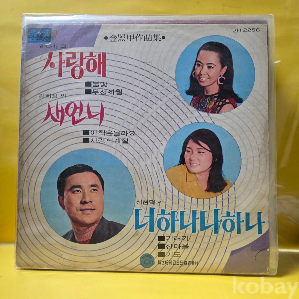 상품 설명 | Side A 1. 너하나 나하나 (신현덕) 2. 기러기 (신현덕) 3. 기도 (신현덕) 4. 새언니 (김희정) 5. 아직은 몰라요 (김희정) 6. 사랑의 계절 (김희정) Side B 1. 사랑해 (리나박) 2. 무정세월 (리나박) 3. 불빛 (리나박) 4. 산마을 (신현덕) 5. 너하나 나하나 (경음악) 6. 사랑해 (경음악) |