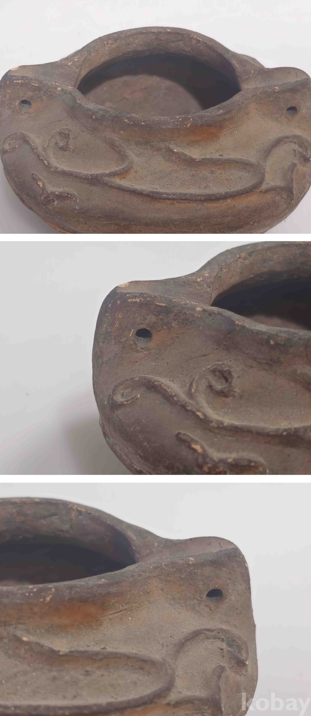 상품 설명 | 연대감 좋은 토기 양각 넝쿨문 소호(재털이)입니다. 상태양호 합니다만 주구에 실유 부분이 있습니다. 참고로 사진은 확대한 상태이며 설명 못한 부분은 사진으로 대체합니다. 흔한 기물이 아니기에 소장의 가치가 높습니다. | ||