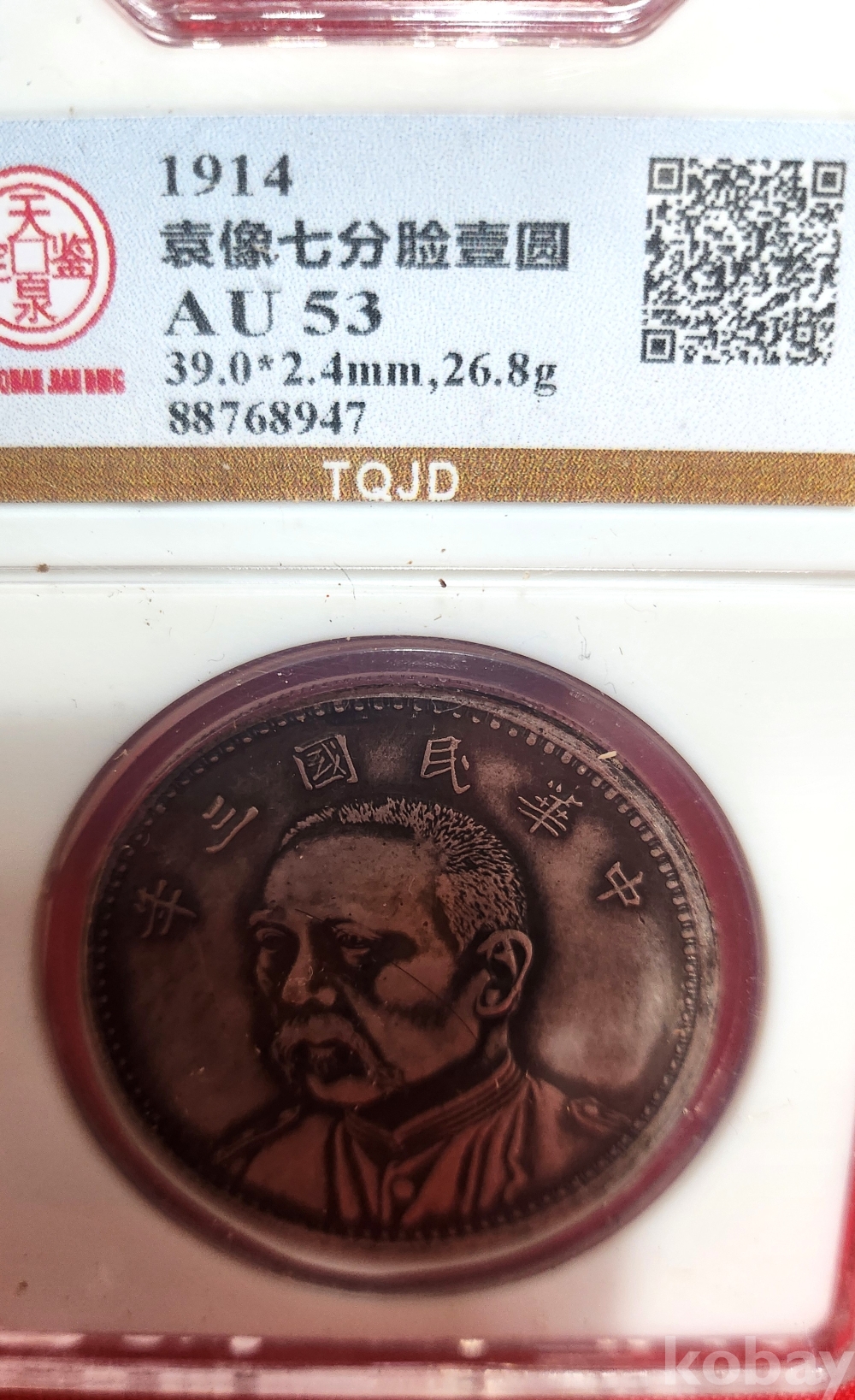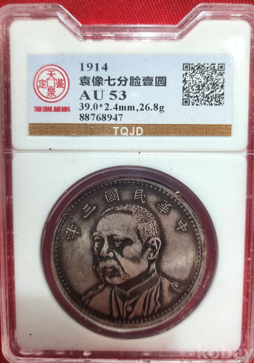 1914년 큐알코드(QR CODE)가 함께하는 은색 중화민국 3년 화패로 밀봉된 상태입니다,