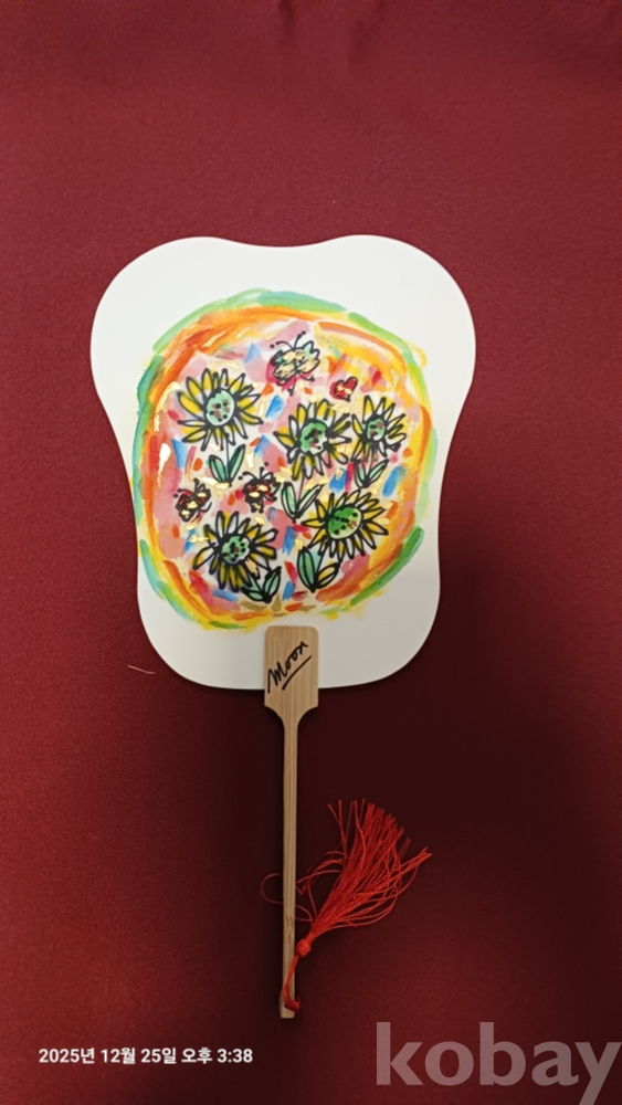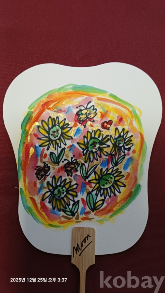 노란색, 초록색, 빨간색, 파란색 등 밝고 선명한 색상을 사용하여 경쾌하고 활기찬 분위기를 연출한 도상봉 화백의 딸인 도문희 선생의 작품입니다.
