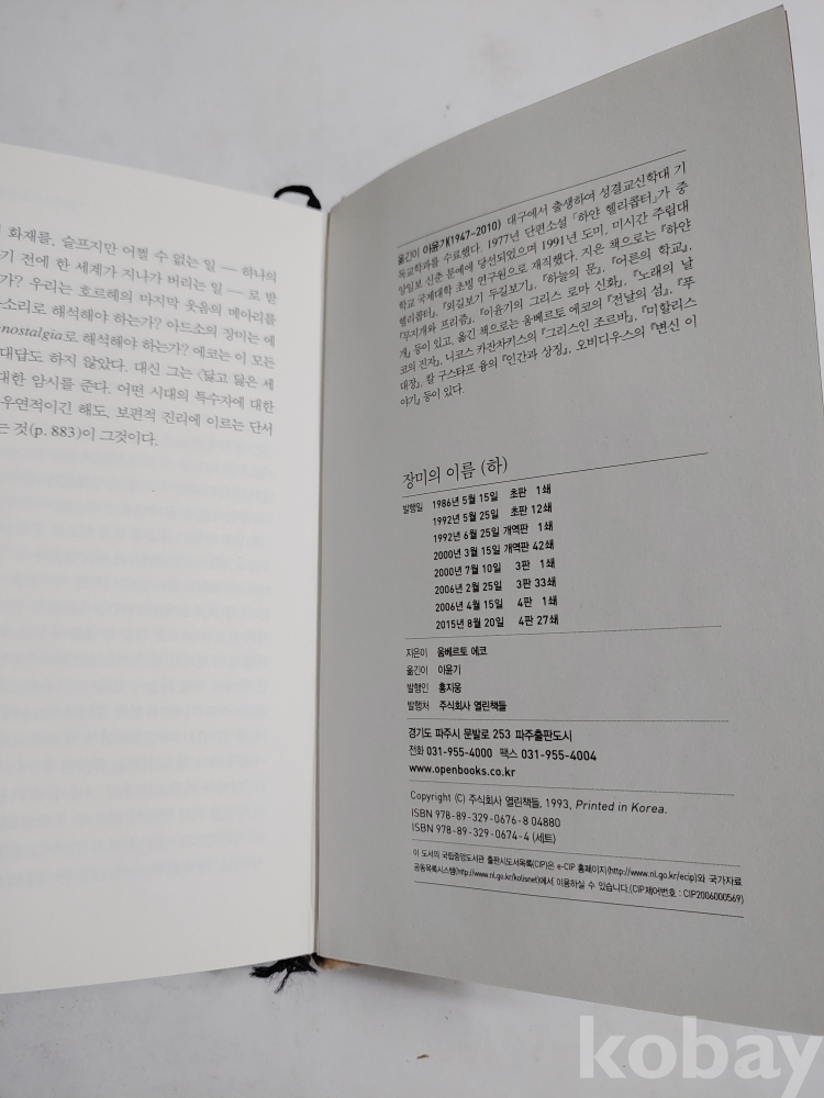 ★천원출발★ L-1.020 옴베르토 에코 장편소설 장미의 이름-하 (5권이상 묶음배송불가)