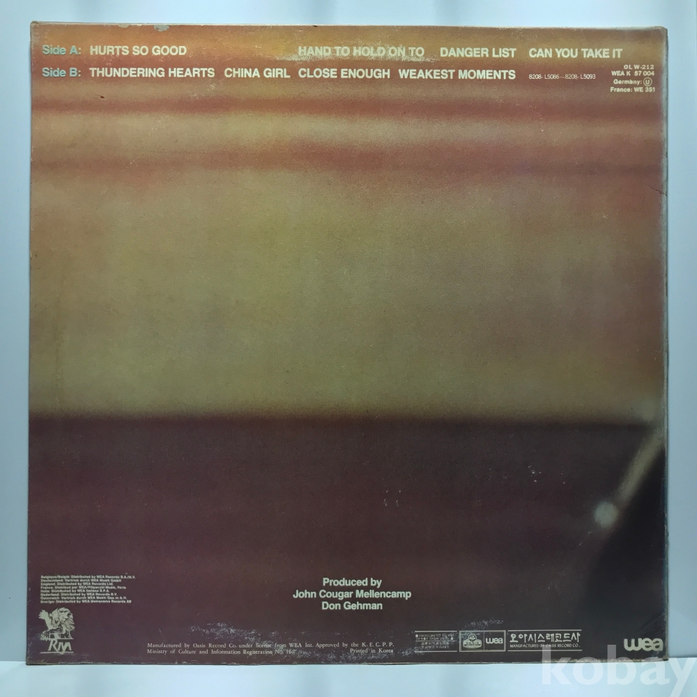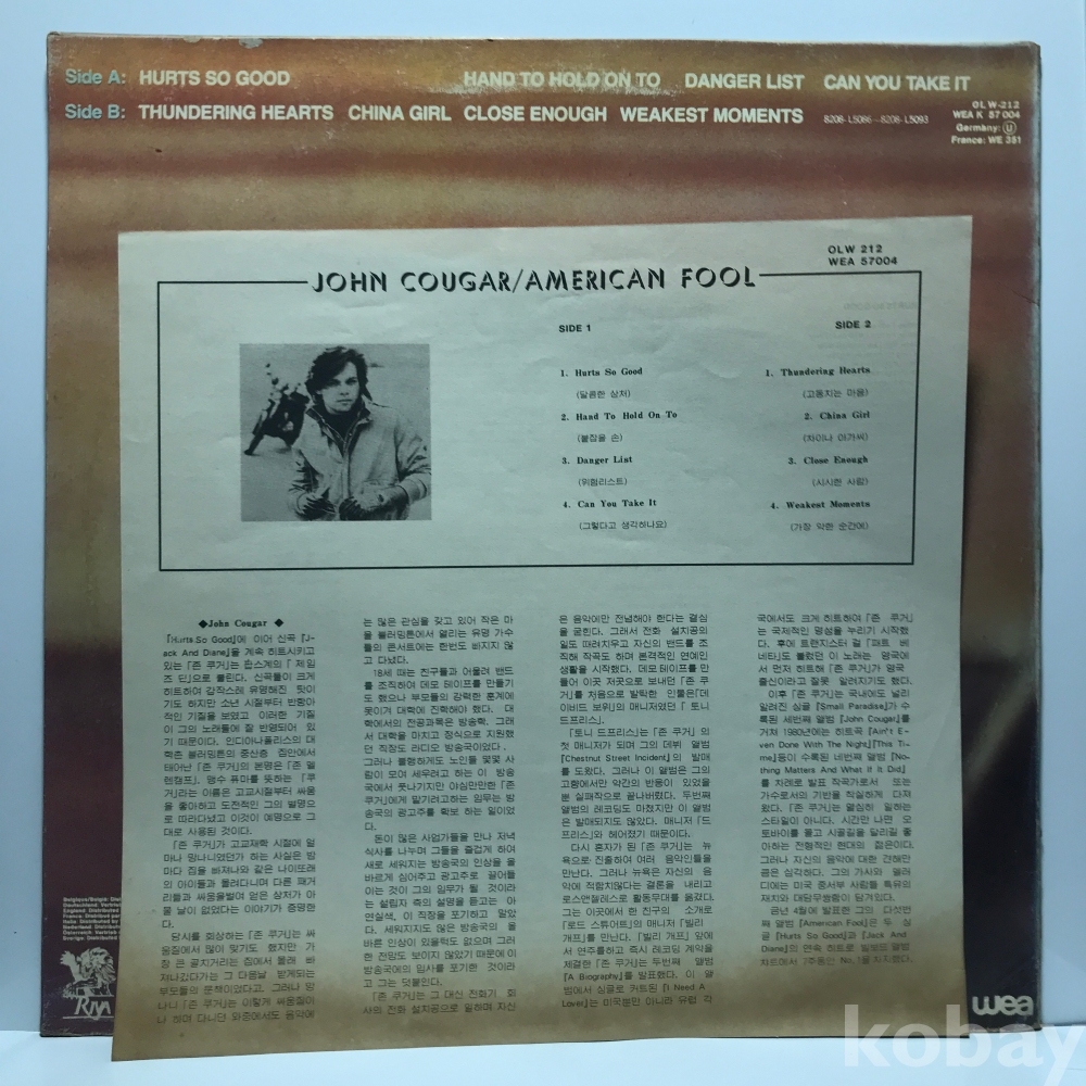 LP 300-208 John Cougar - Scarecrow 82 오아시스 자켓 EX 알판 EX