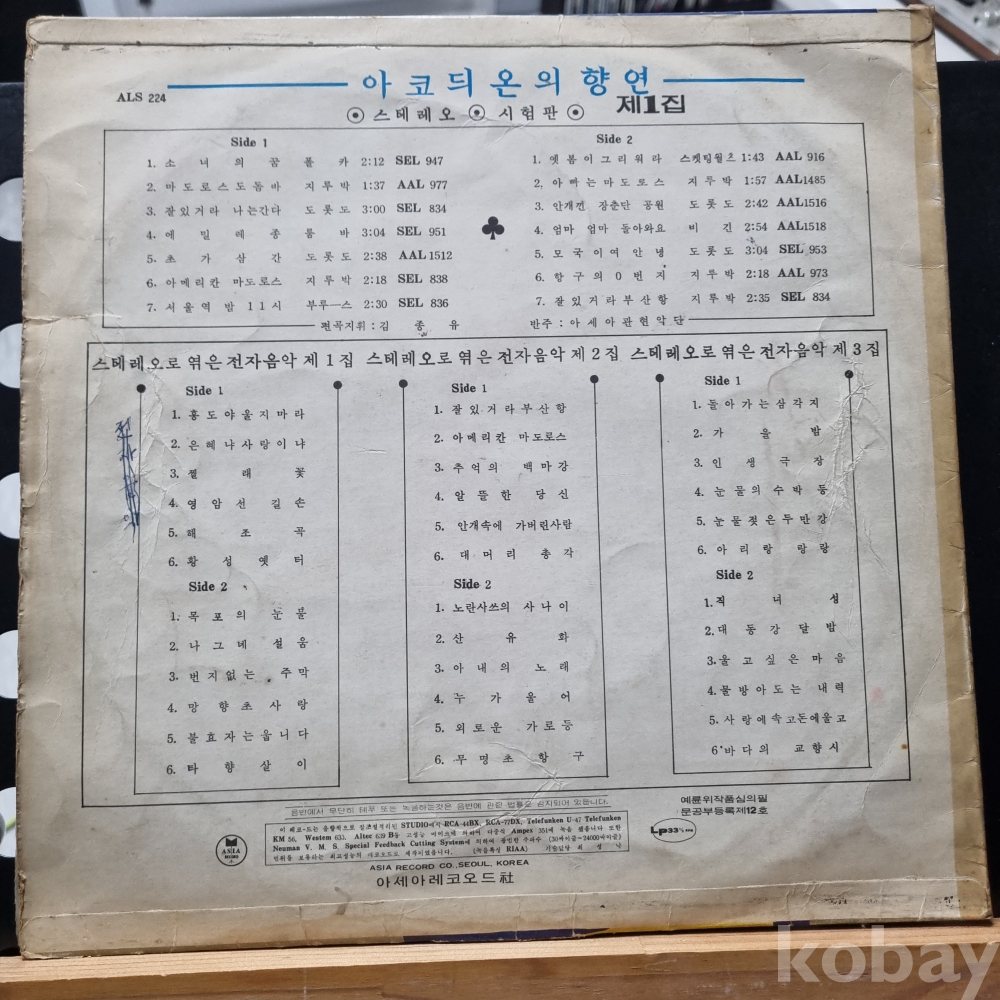 희귀음반(초반) 아코디온의형연 제1집 [스테레오 시험판]