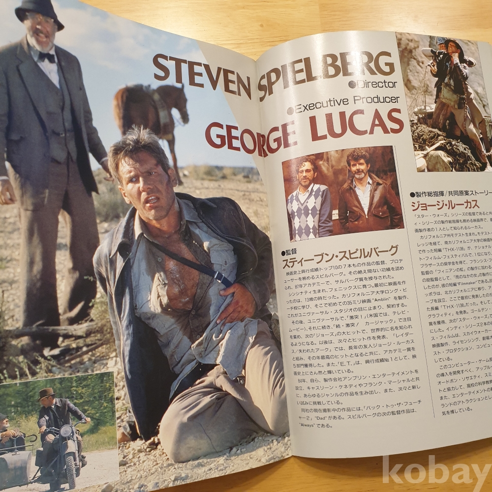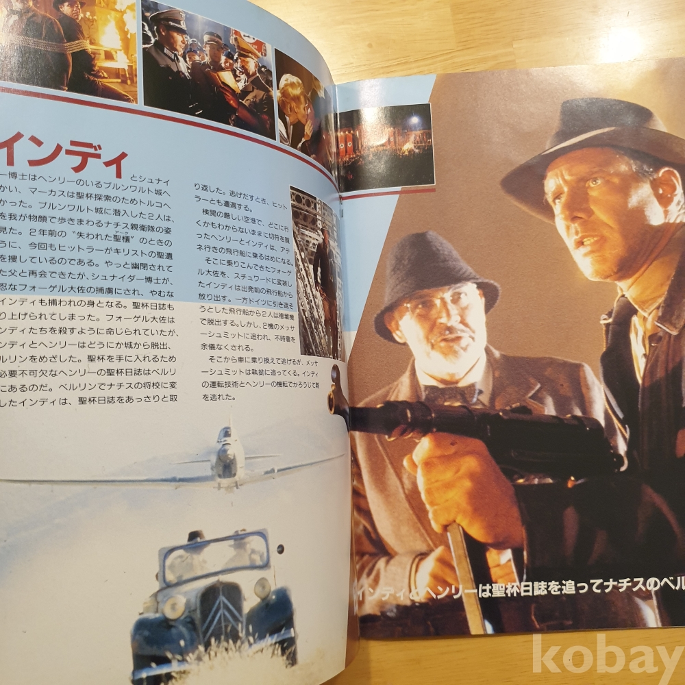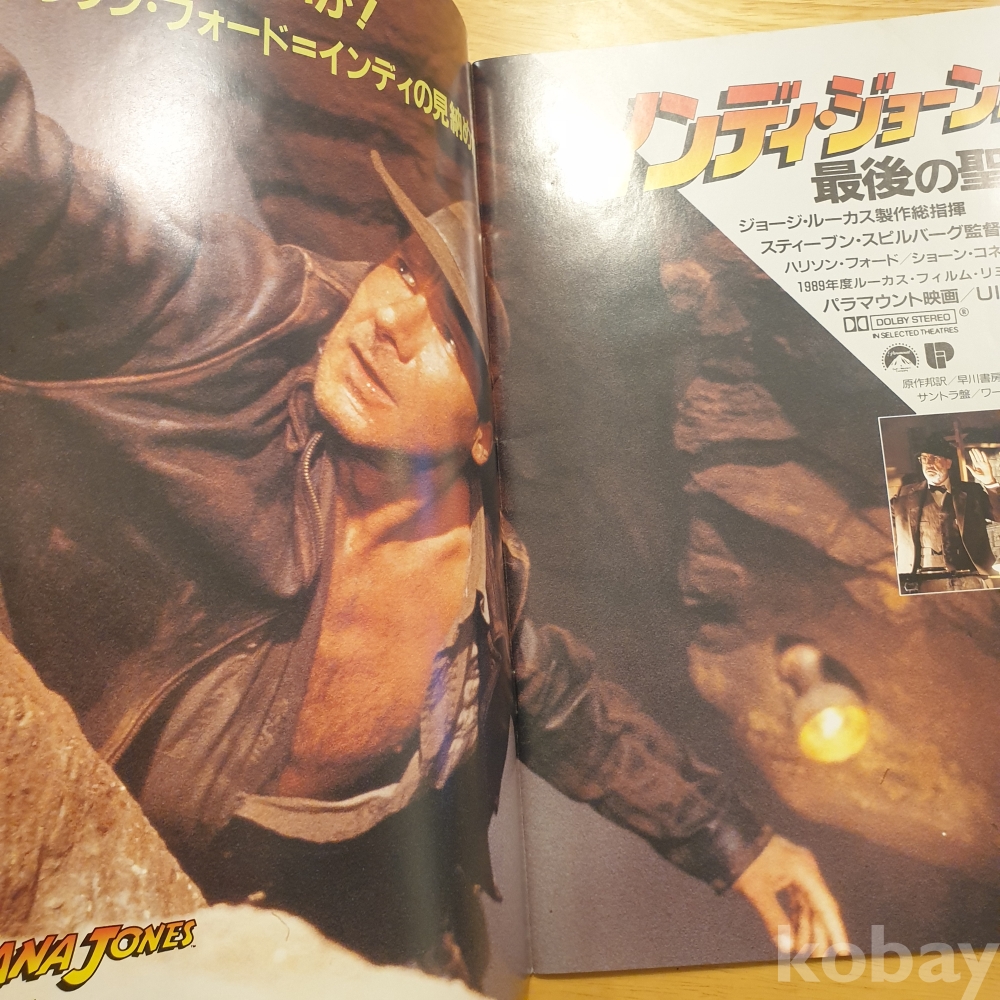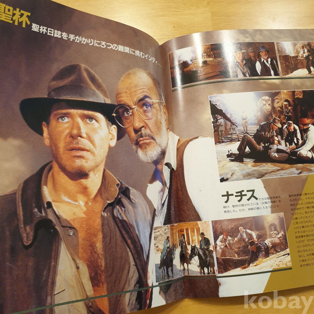 스티븐 스필버그 감독, 해리슨 포드, 숀 코네리 주연의 1989년 영화 <인디아나존스 - 최후의 성전> 일본영화팜플렛입니다. 일본에서 상영 당시 유료로 판매했던, 소책자형식의 팜플렛으로 일본어로 영화속 줄거리나 캐릭터, 장면에 대한 소개 등이 담겨있습니다.