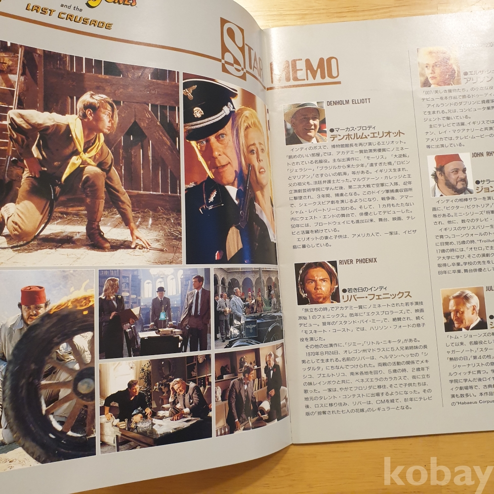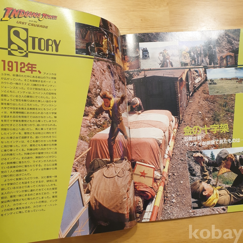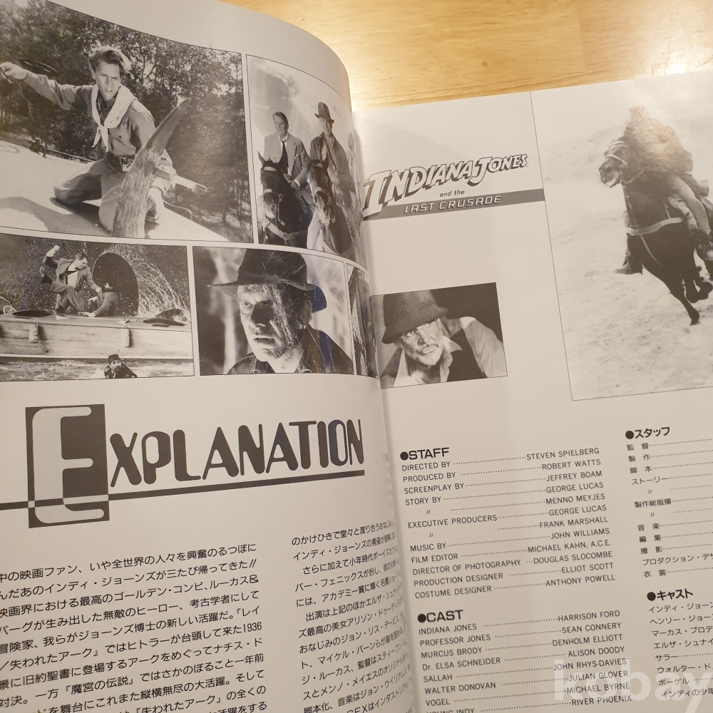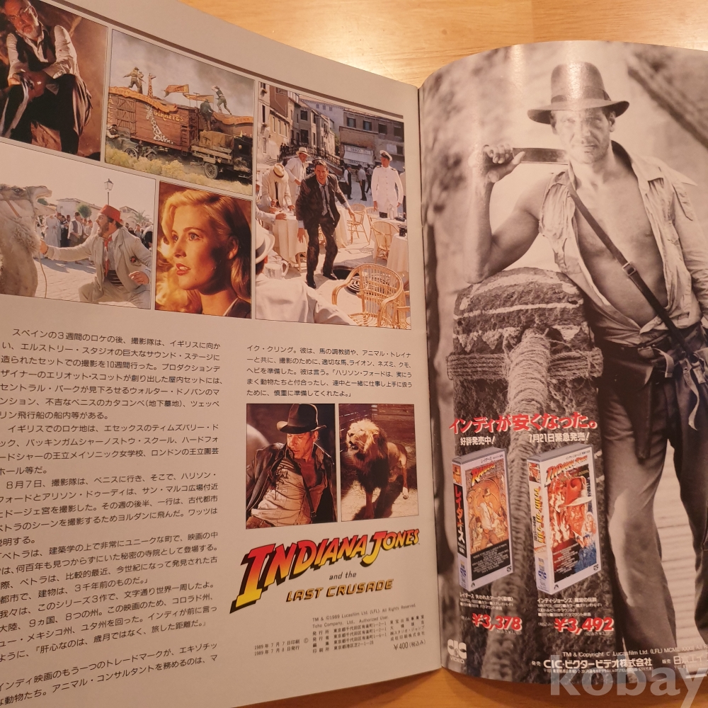 스티븐 스필버그 감독, 해리슨 포드, 숀 코네리 주연의 1989년 영화 <인디아나존스 - 최후의 성전> 일본영화팜플렛입니다. 일본에서 상영 당시 유료로 판매했던, 소책자형식의 팜플렛으로 일본어로 영화속 줄거리나 캐릭터, 장면에 대한 소개 등이 담겨있습니다.