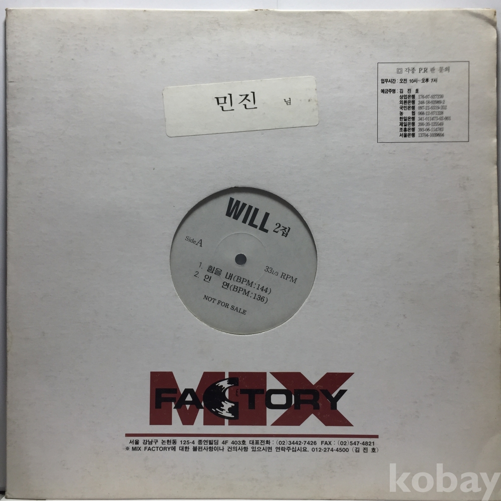 LP 81,300-55 Will 2집 - 힘을 내/ 과거는 묻지 마세요 자켓 EX 알판 EX+ PR반