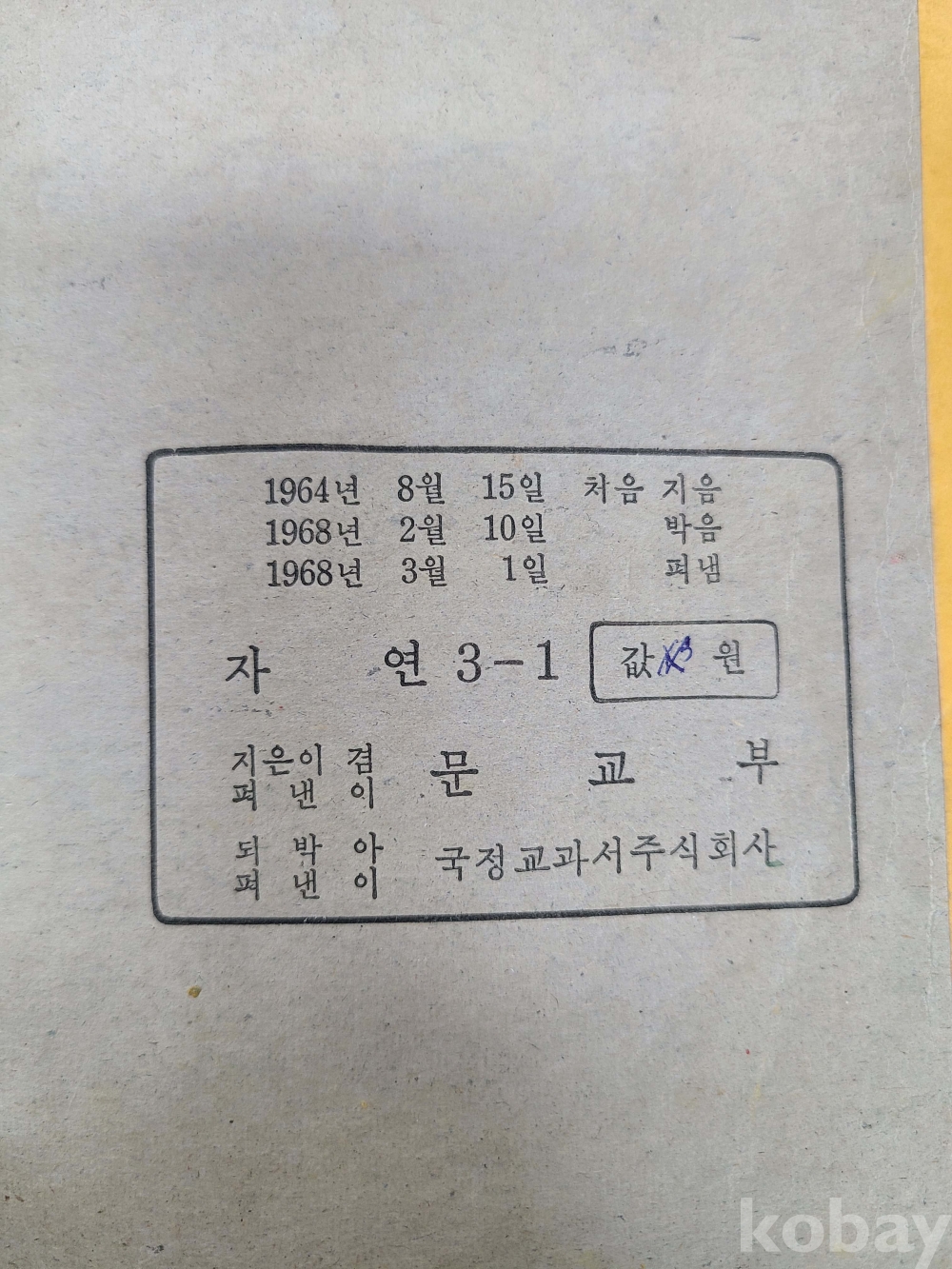 [교과서] 자연3-1*1968년/문교부 발행,낙서, 물먹음,찢어진부분 있음