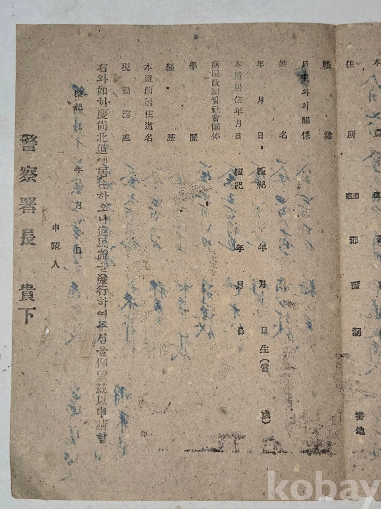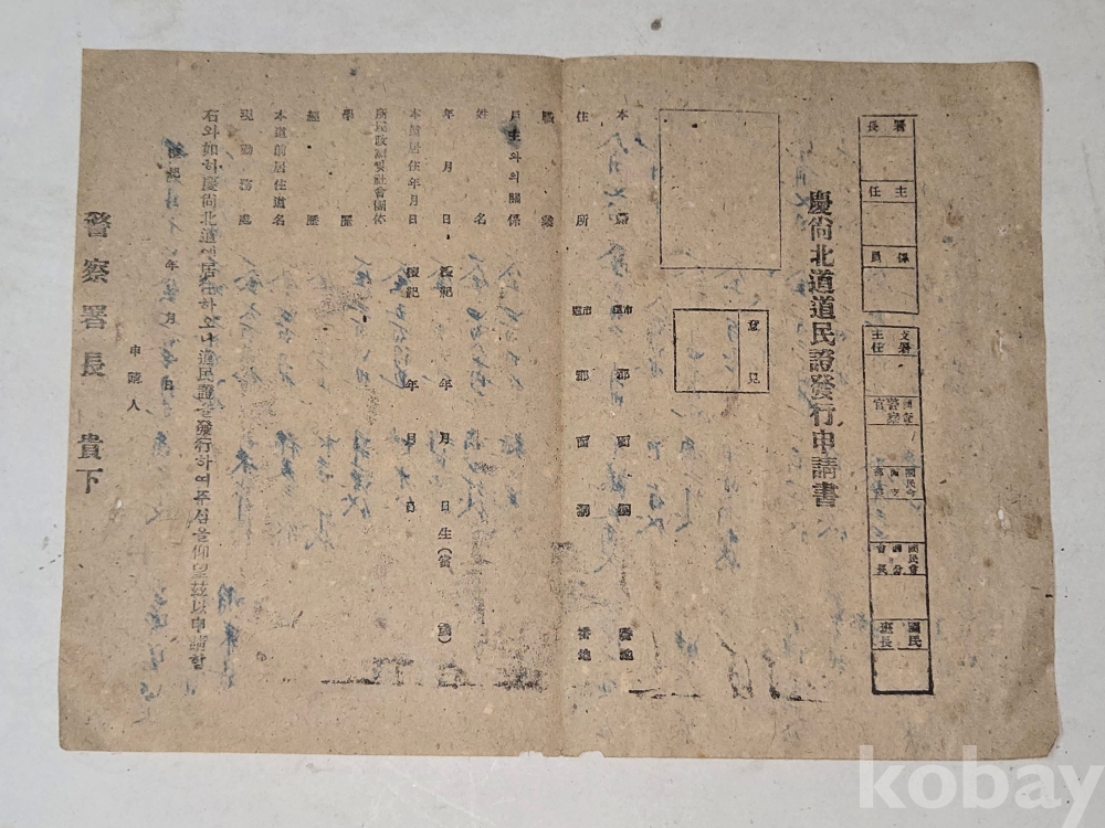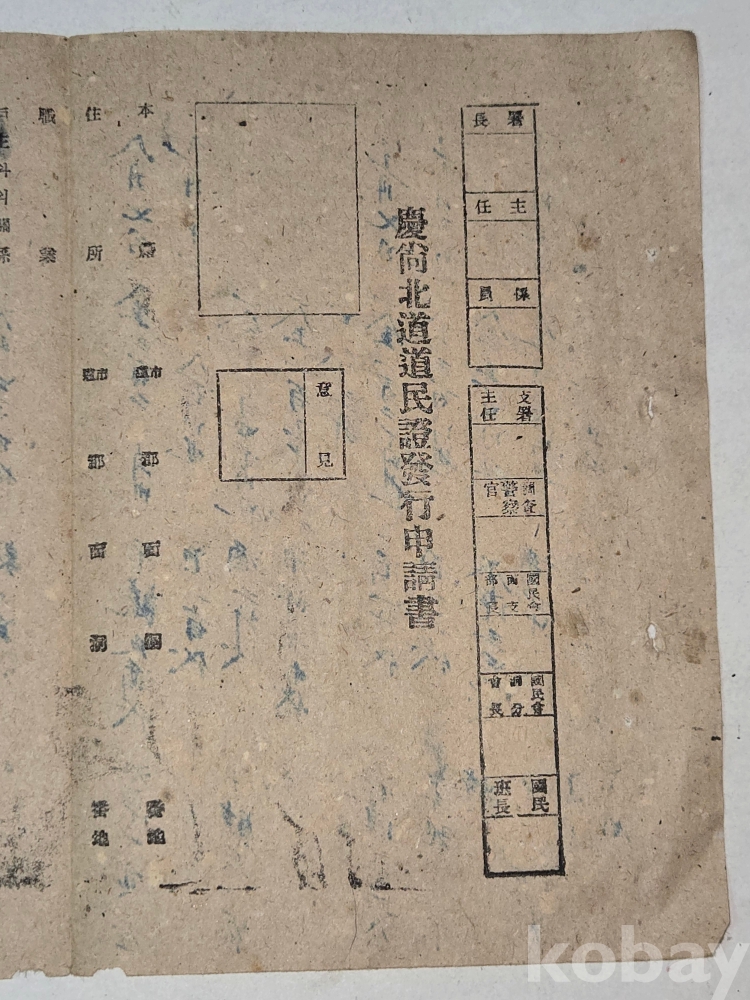 1950년대 경상북도 도민증발행신청서 == 미사용 상태