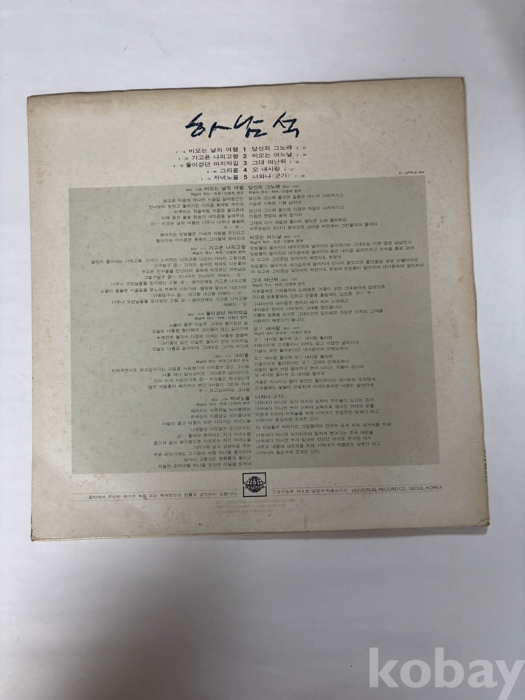 | 자켓상태 | EX : 약간의 마모, 모서리 찢김 존재 | 음반상태 | VG : 생활 기스 다수, 가벼운 노이즈 존재 | 발매정보 | 초반 | 가사지여부 | 무 |