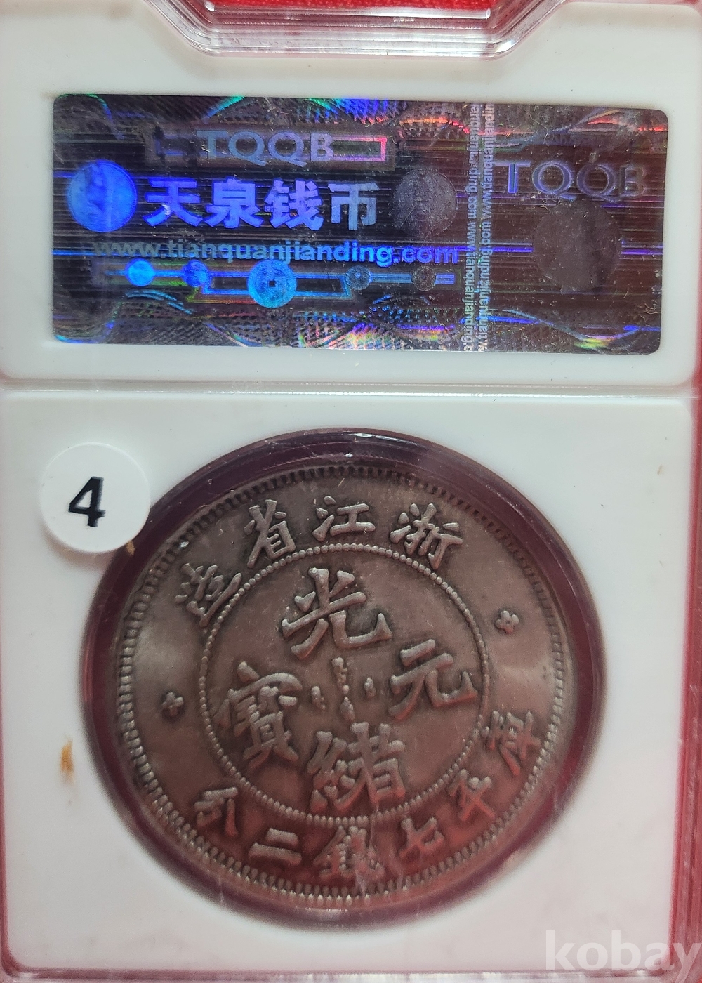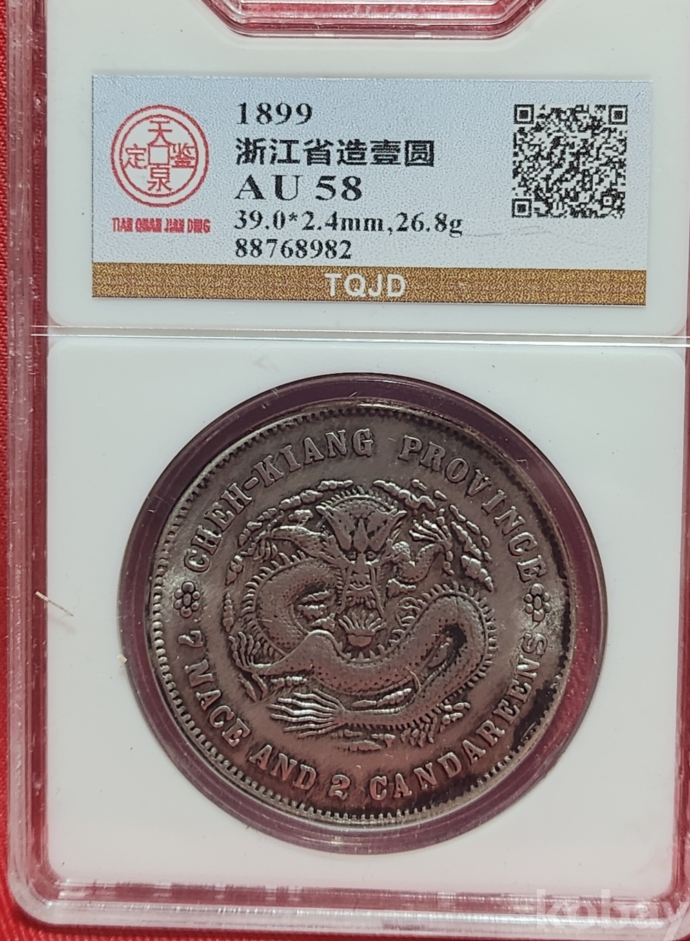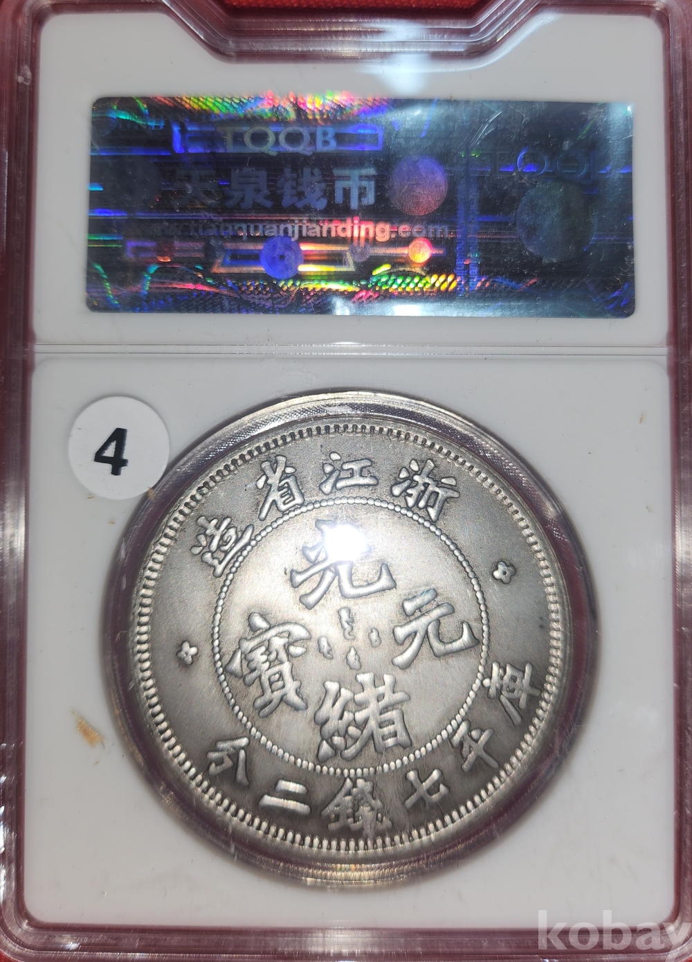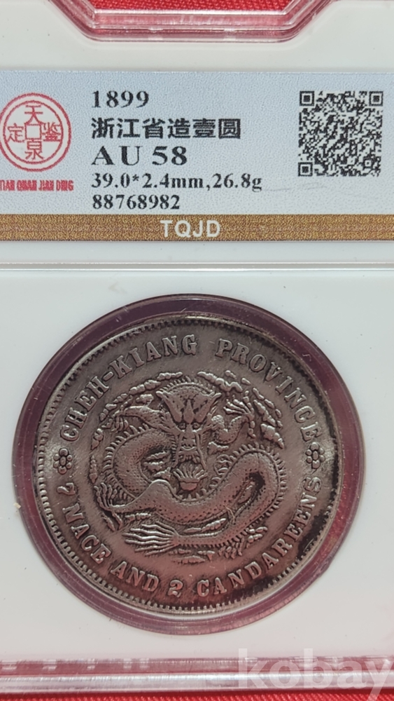 1899 년 큐알코드(QR CODE)가 함께하는 은색 광서원보 (光緖元寶) 화패로 밀봉된 상태입니다,