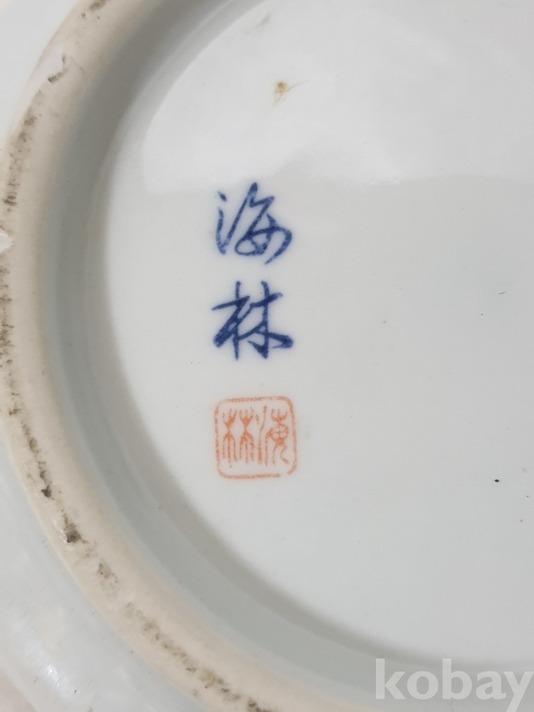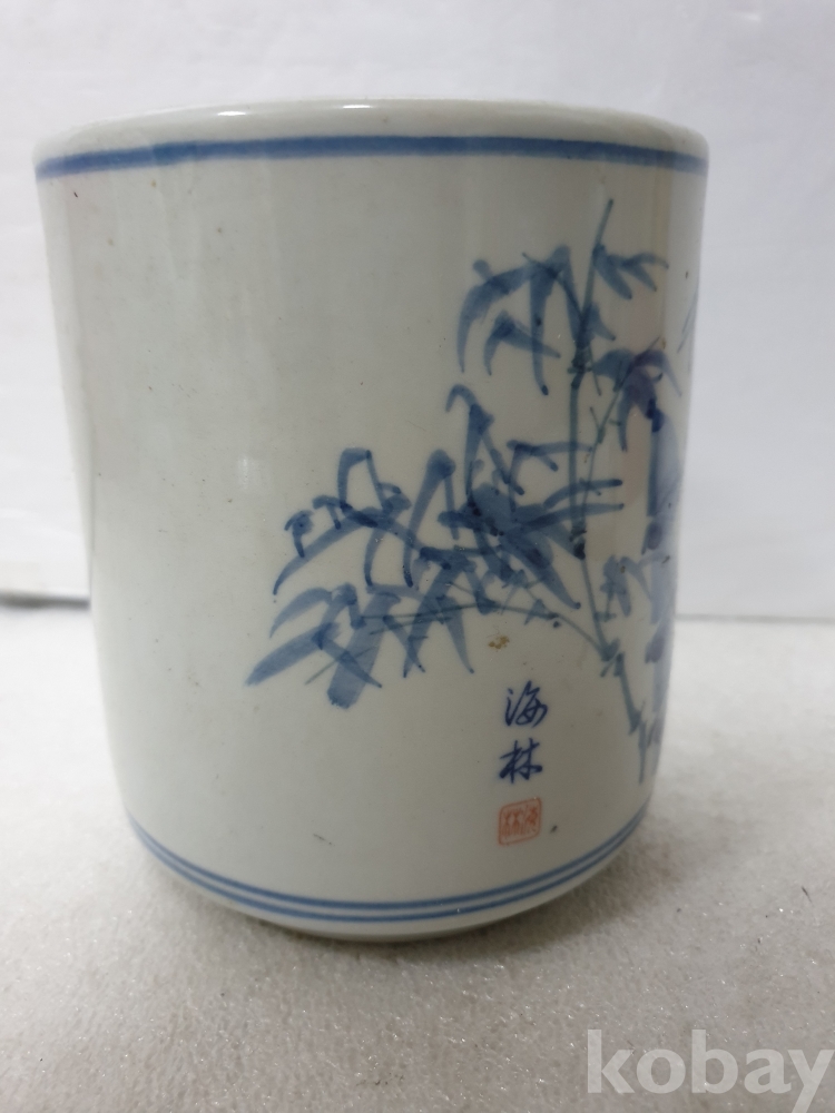 {천원경매} 12-1163 대나무그림 원형 도자기(13*15)