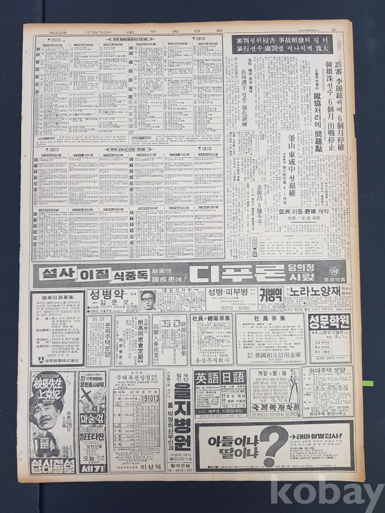 **** 1973.07.28(중앙일보)/태평양화학 아모레하이톤화장품 광고포함/약 8면