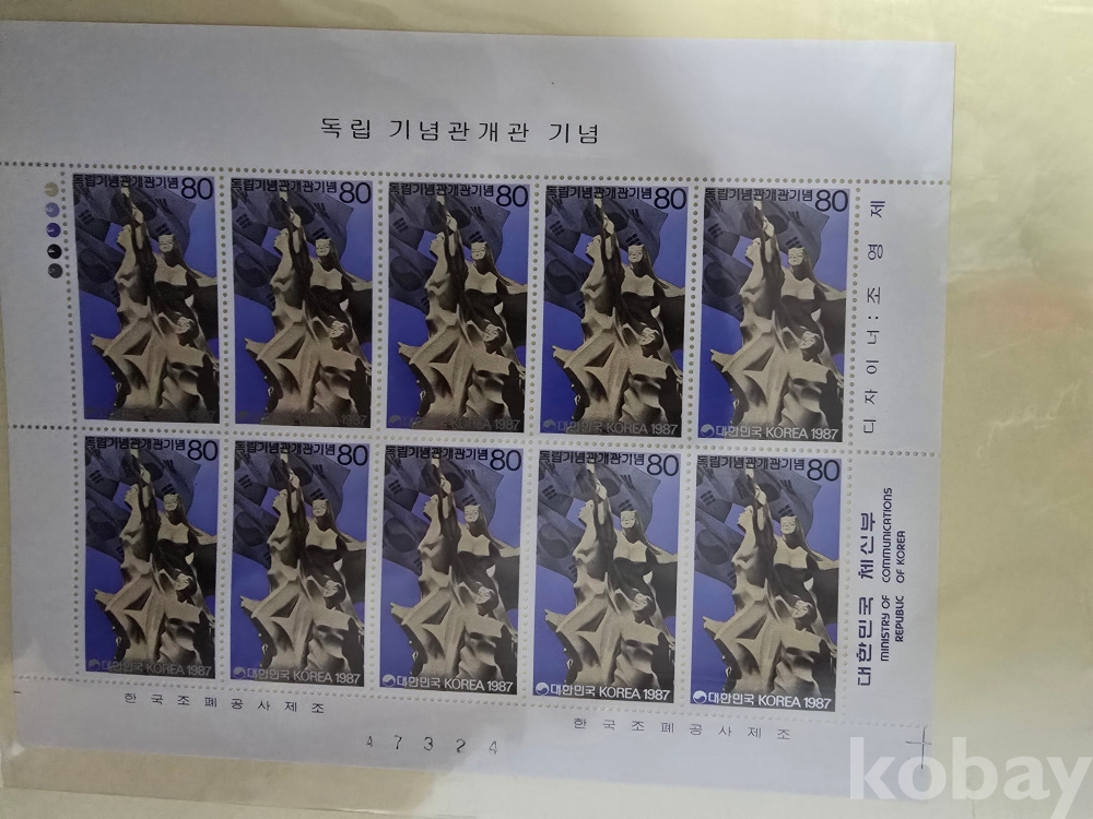미사용 전지우표/87'8.14독립기념관개관기념 한국인삼과태극기