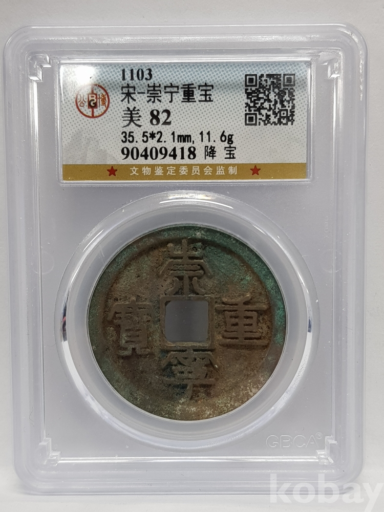 - 중국 북송 휘종 1103년 숭녕중보 엽전 인증 주화