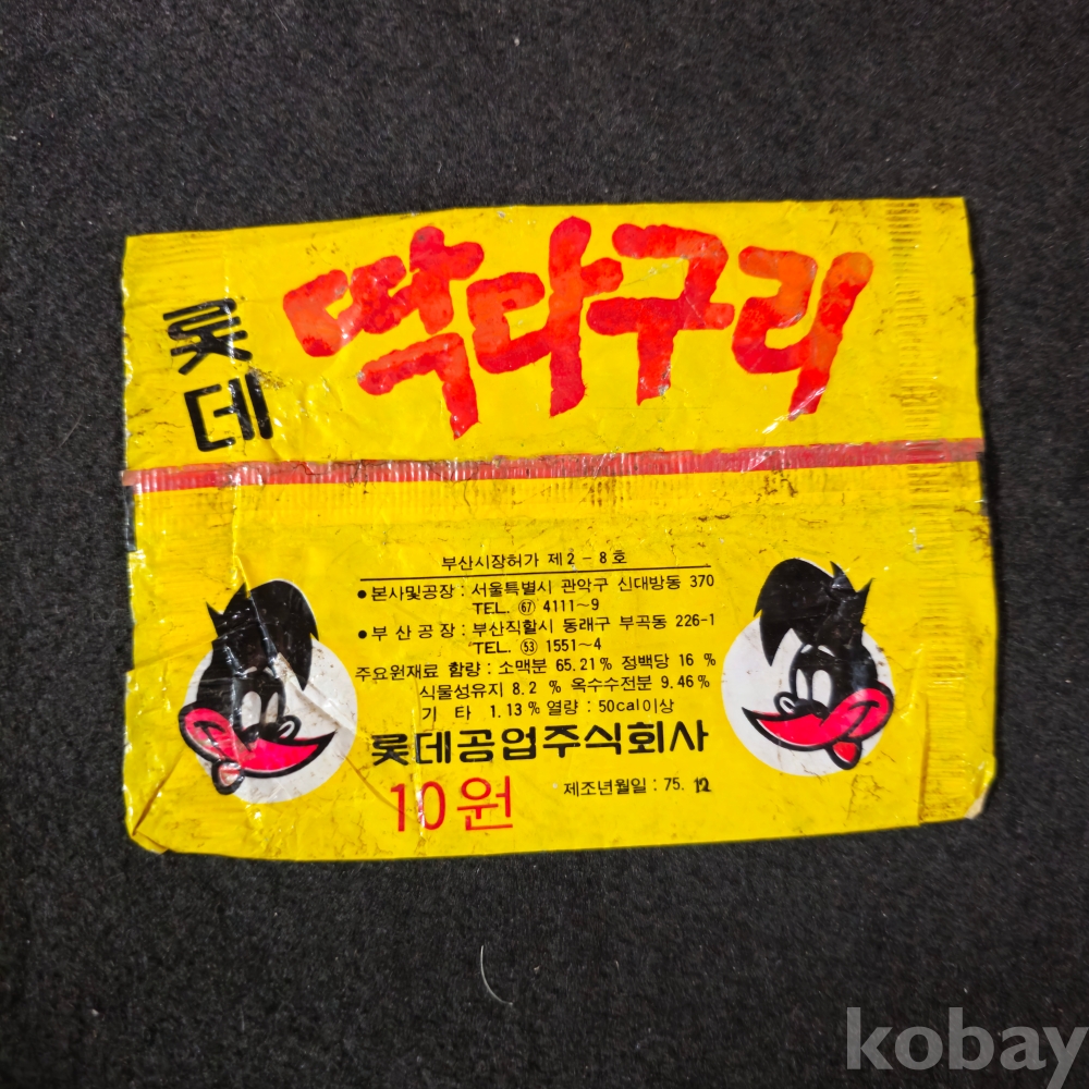 ​​(((근현대자료/과자봉지))) 롯데 딱다구리 과자 비닐 봉지 / 1975년