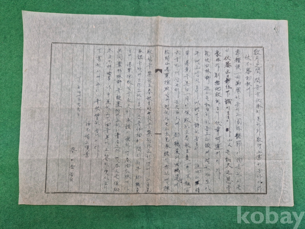 산의 落葉採取(낙엽채취)에 관한 내용의 간찰(산림자료)