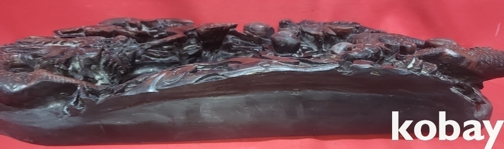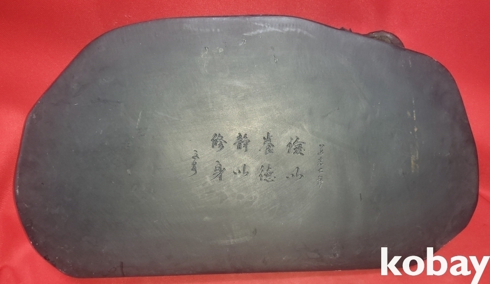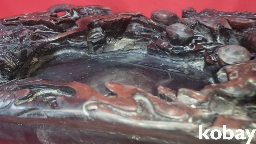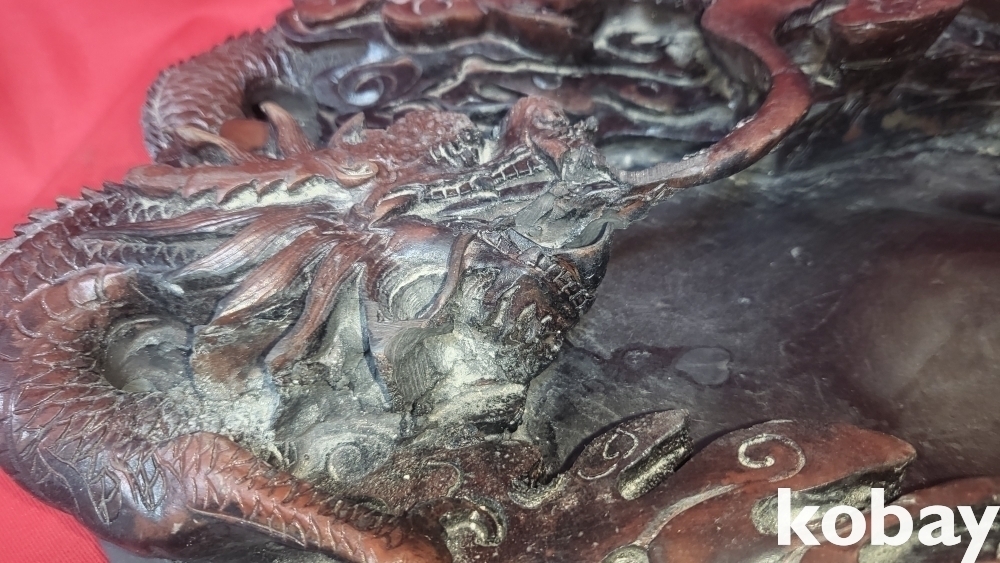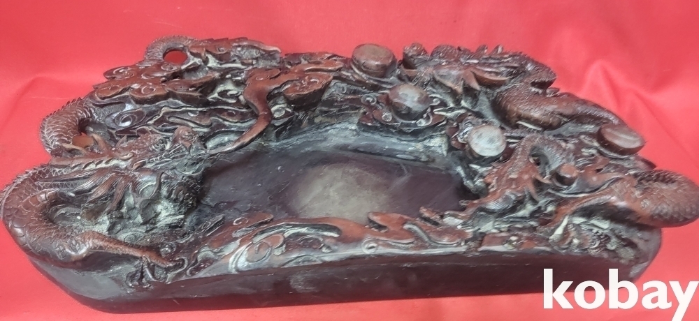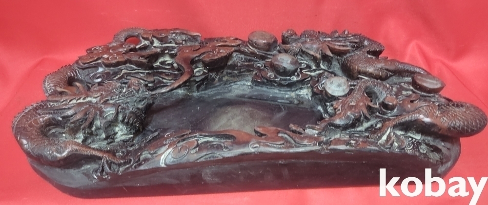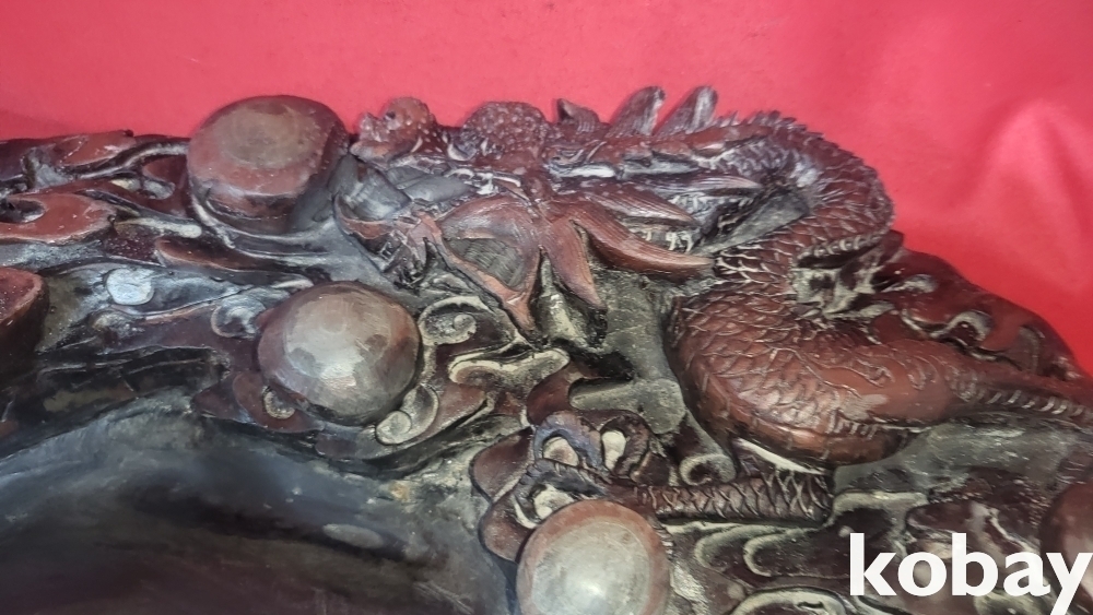 도광(道光) 7년(1827년) 관지 보이는 붉은 색을 지닌 쌍용(雙龍)문양 큰 벼루입니다,