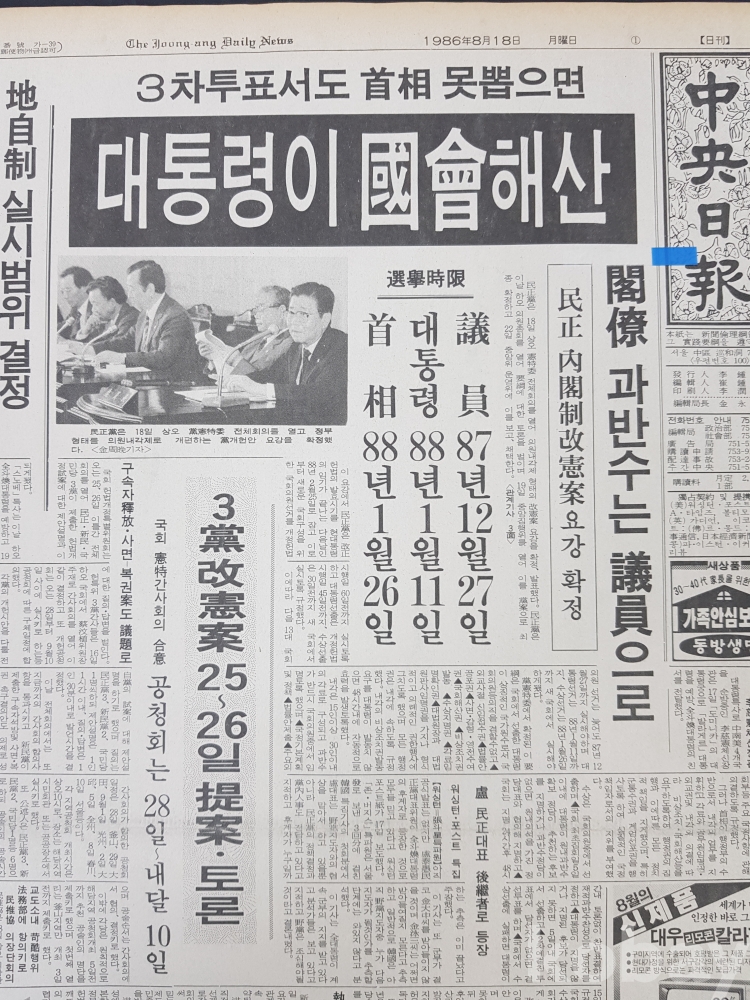 **** 1986.08.18(중앙일보)/3차투표서도 수상 못뽑으면 대통령이 국회 해산 포함/약 12면