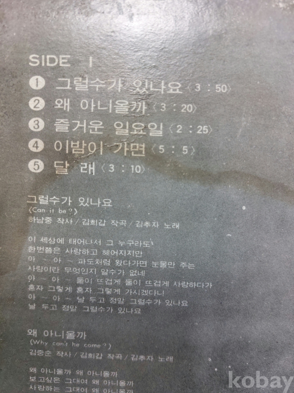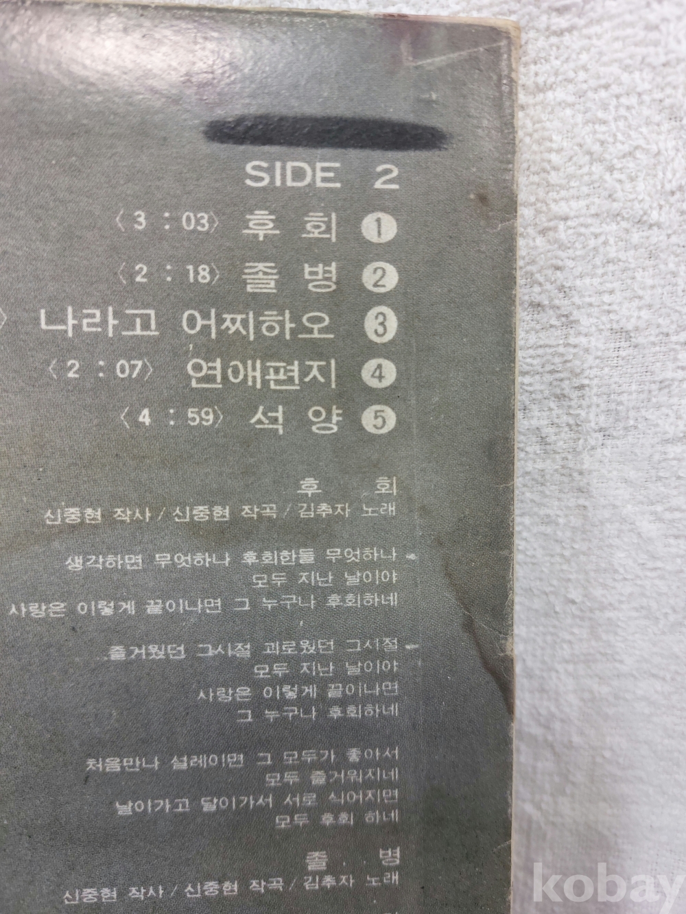 | 자켓상태 | EX : 약간의 마모, 모서리 찢김 존재 | 음반상태 | NM : 개봉했으나 미사용급, 스크래치 없음 | 발매정보 | 초반 | 가사지여부 | 유 |