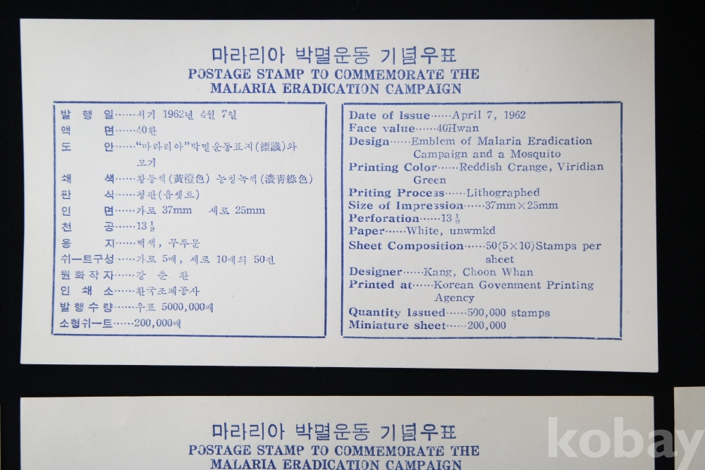 소형 안내카드(10매)/ 마라리아 박멸운동 기념 / 실제물품사진 / 251210-2-25