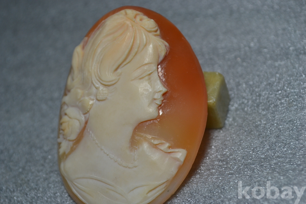 아름다운 귀족여인의 옆모습 얼굴이 정교하고 고급스럽게 손조각되어 만들어진 고급 핸드메이드 까메오 작품 입니다. (사진참조)