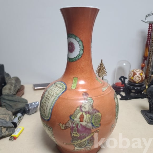 작풍성과 크기가 큰 중국 전통도자기 입니다 색채가 강하고 바닥에 관지가 있습니다.