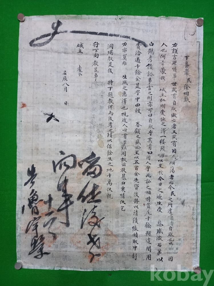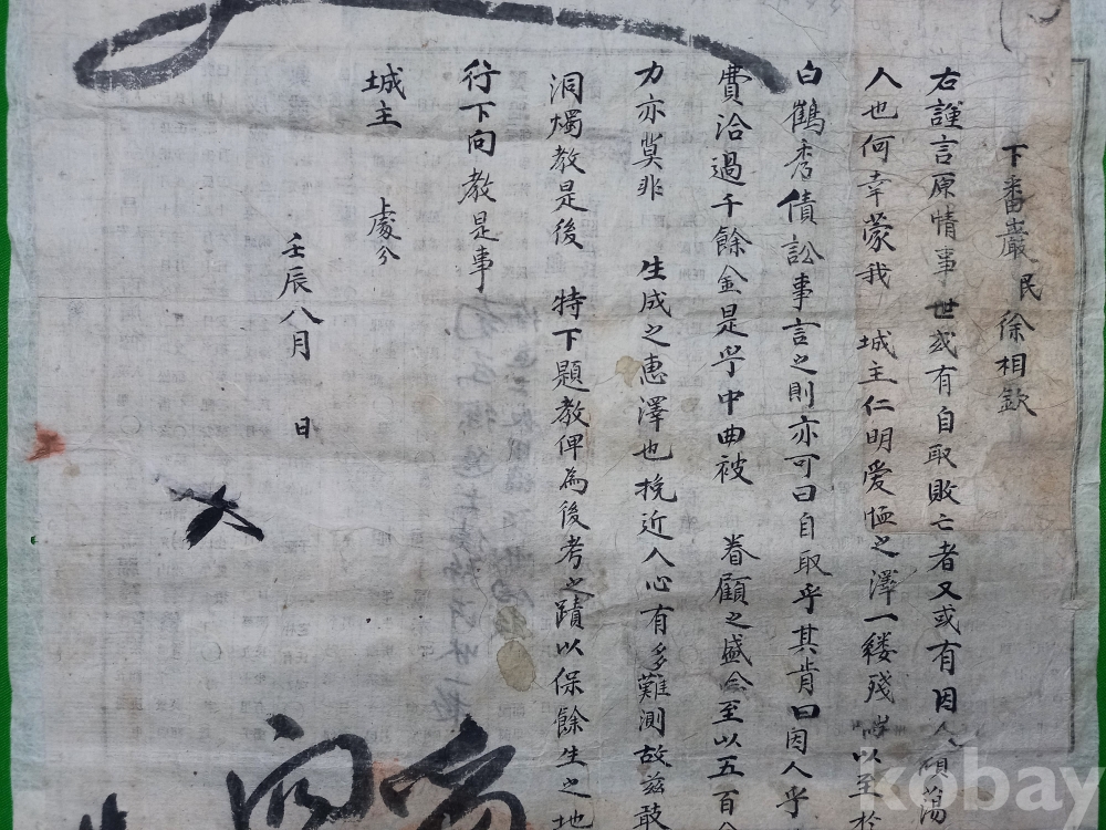 *. 하번암 서상흠이 성주에게 채무완재의 증빙서류의 발급을 청원한 문건
