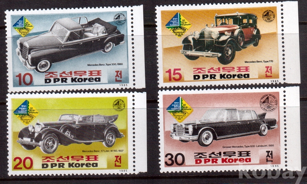 (자동차) 북한 1985.10.25 도이췰란드우표취인시장 <<쥐드웨스트 85>> 4완 MNH