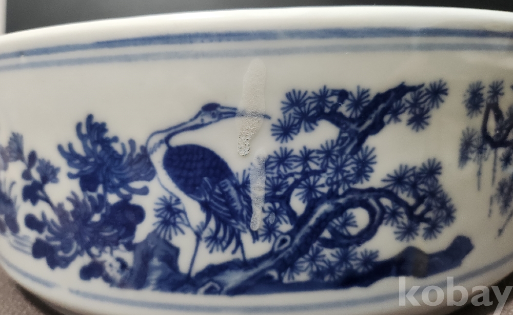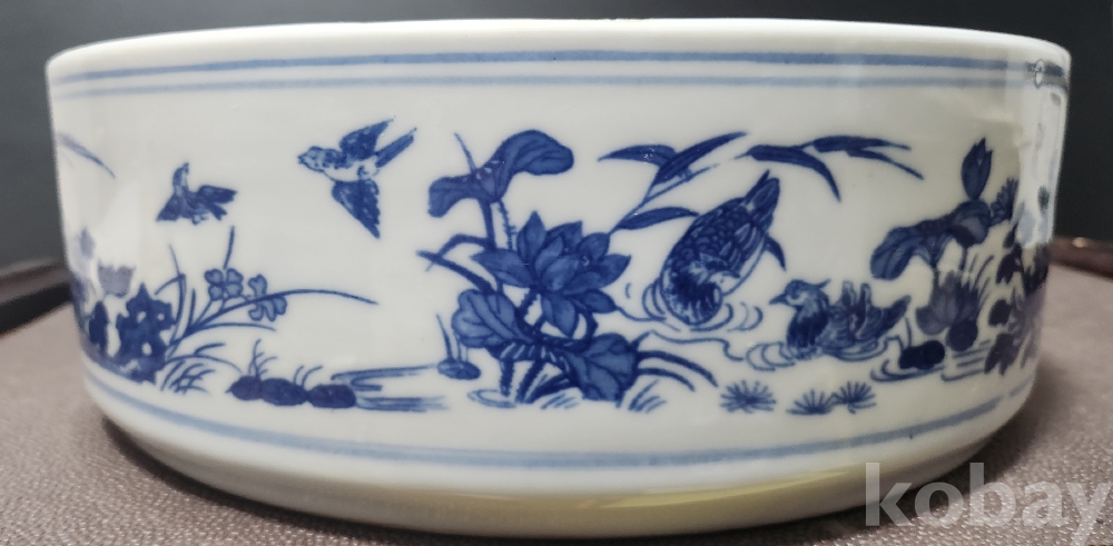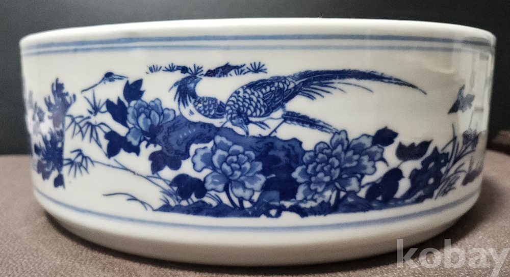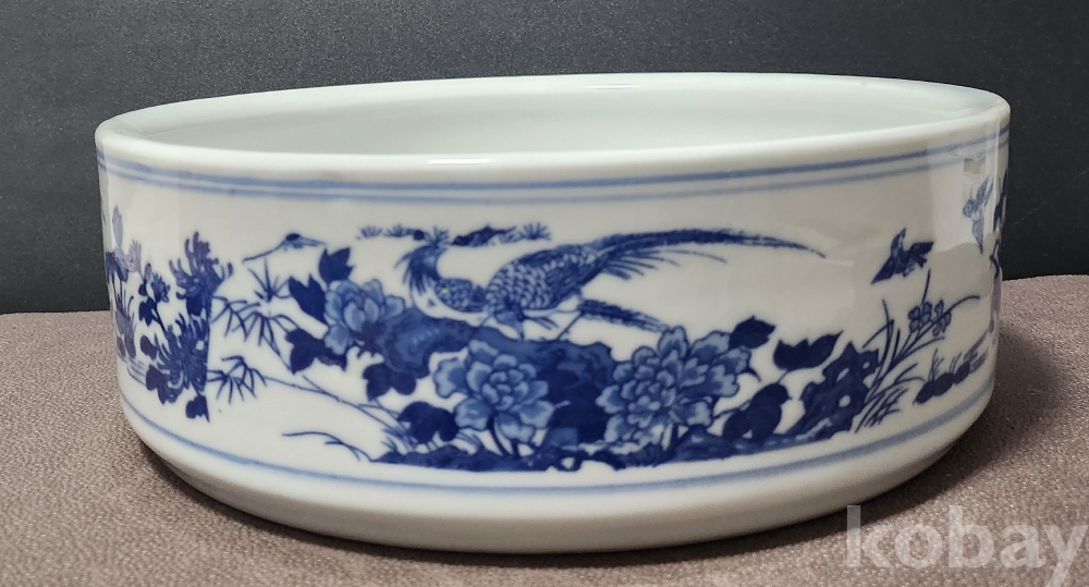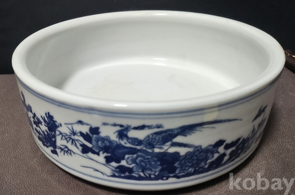 경덕진제[景德鎮製] 백자청화영모도문수반 白磁靑華翎毛圖紋水盤