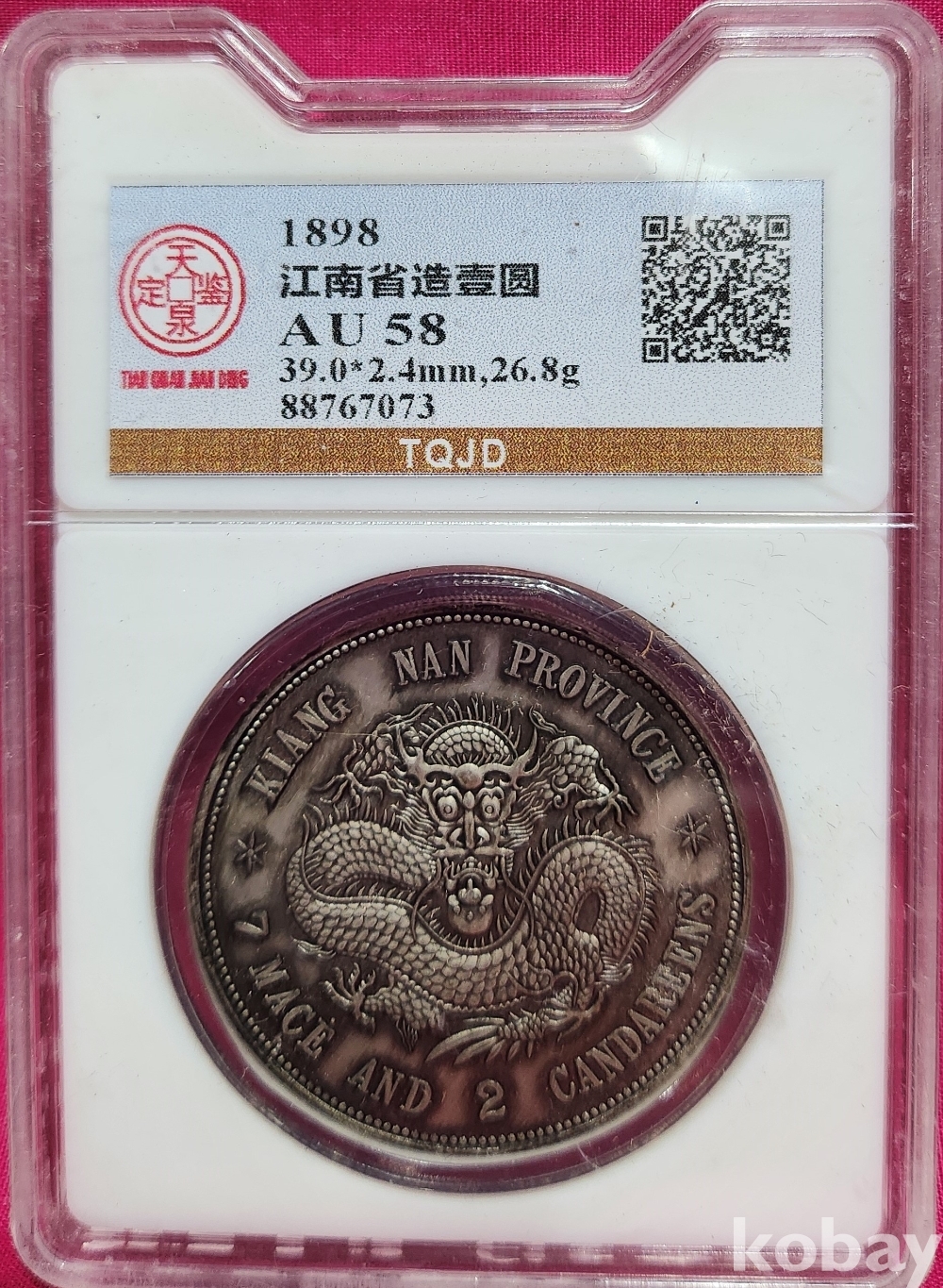 1898년 큐알코드(QR CODE)가 함께하는 은색  광서원보 (光緖元寶)   화패로 밀봉된 상태입니다,