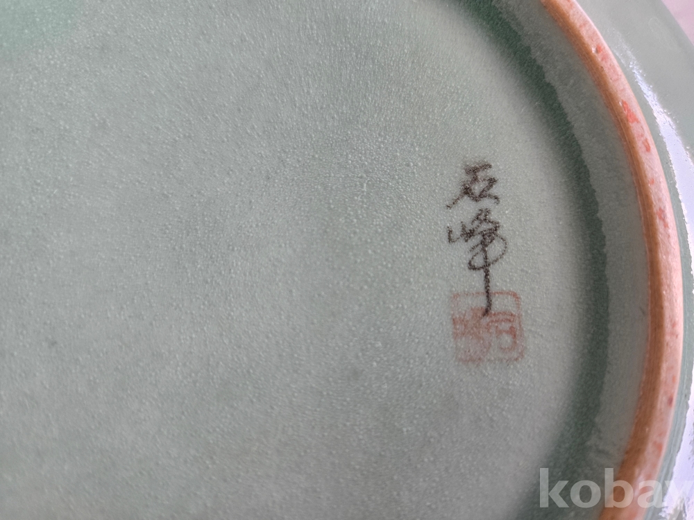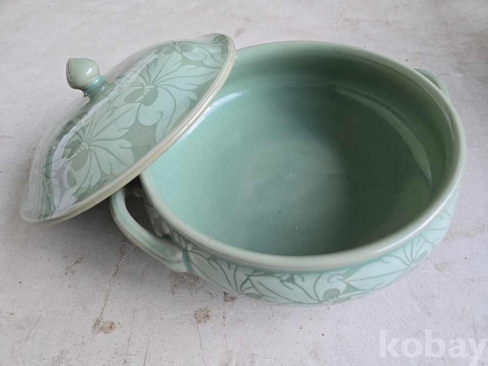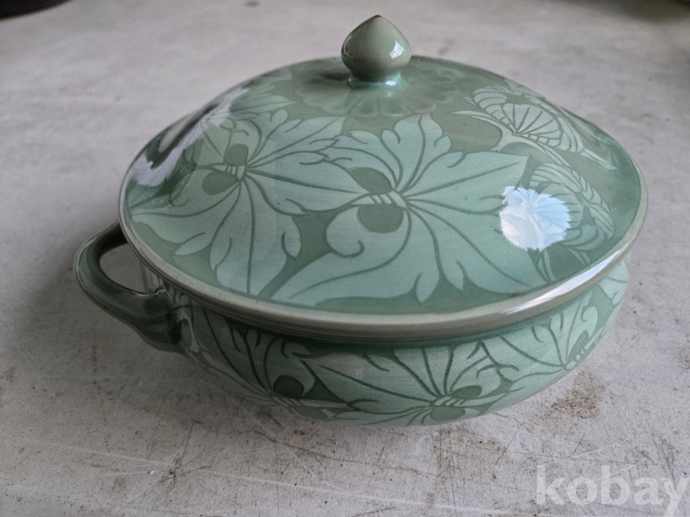 석봉 도예가의 나무 문양이 있는 청자 양이 합 입니다.