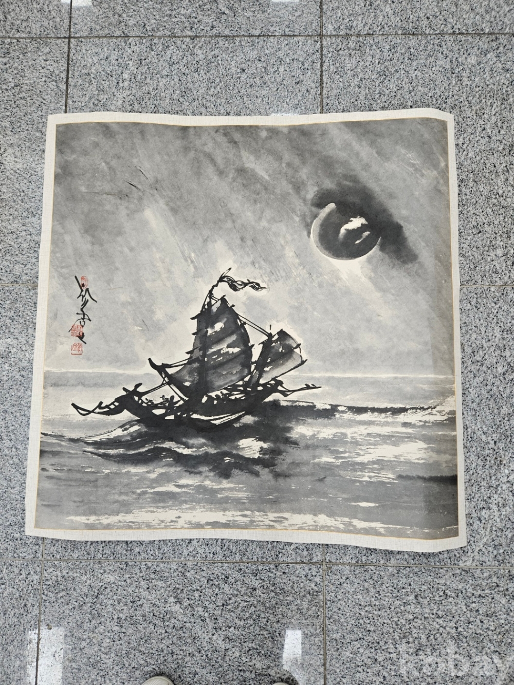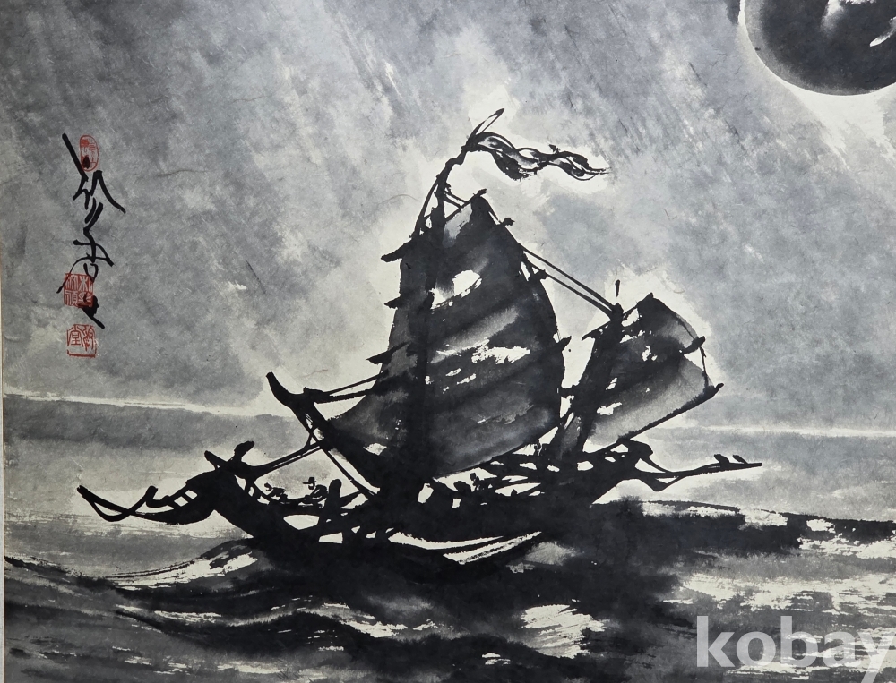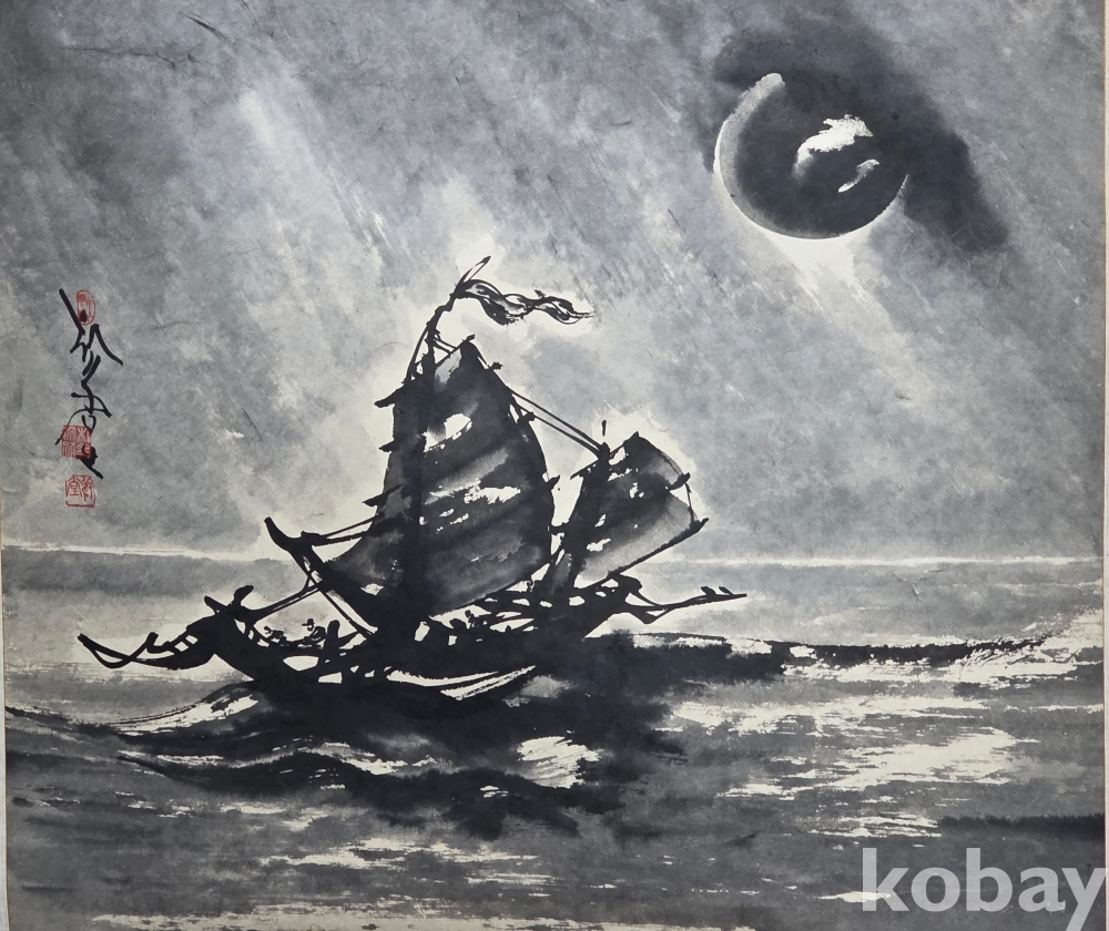 본 작품은 두툼한 한지 장지에 수묵으로 바다 위를 항해하는 범선을 표현한 대형 작품이다. 먹의 농담과 번짐을 활용해 파도의 흐름과 해상의 분위기가 화면 전체에 구성돼 있다. 작품성과 소장가치를 함께 갖춘 작품으로 평가된다.