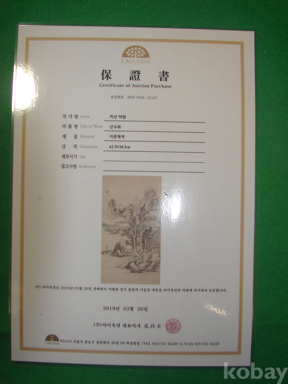 장지에그린 미산 허형(米山 許瀅, 1862 - 1938)의 산수화(62.5×34.5)입니다.