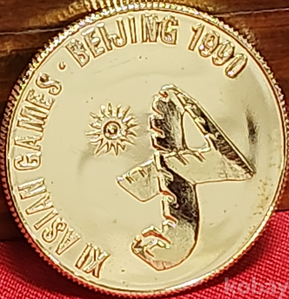 1990년 북경 아시안 게임( Asian Games)  길상(吉祥)문양 황금색 (黃金色)기념품입니다,