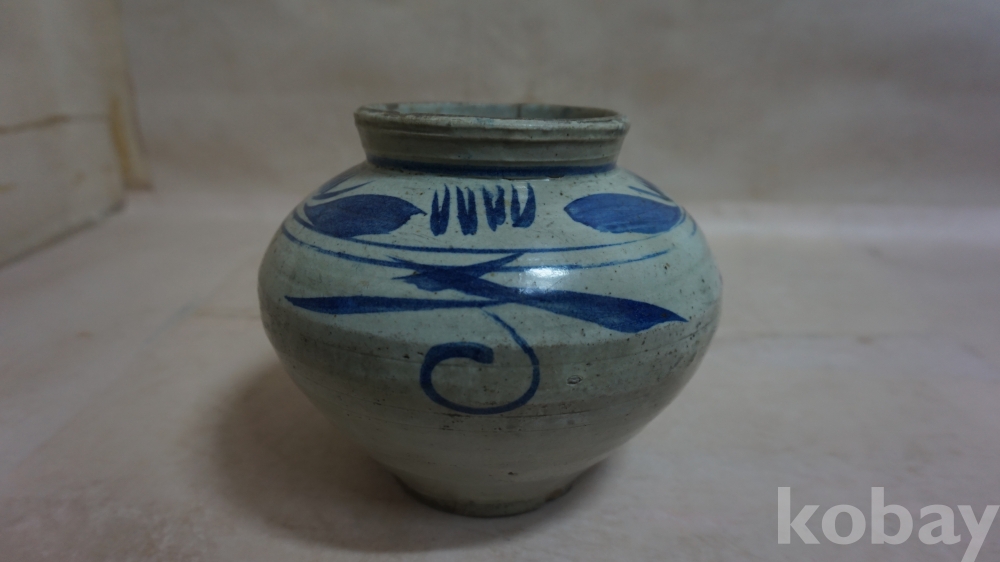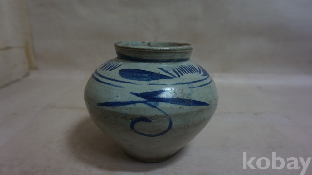 ◈◈조선후기../청화백자 굽높은 잎새,추상문,ㅡ''단지 호 한점◈◈