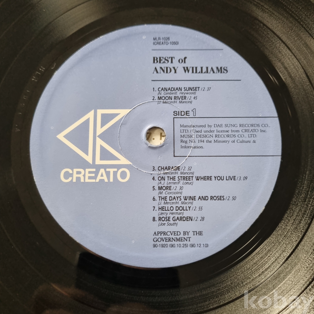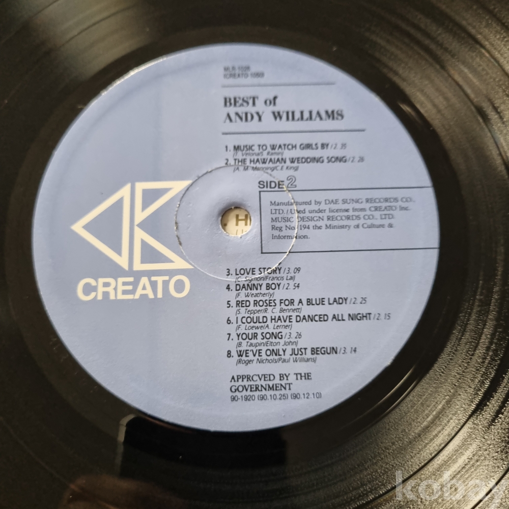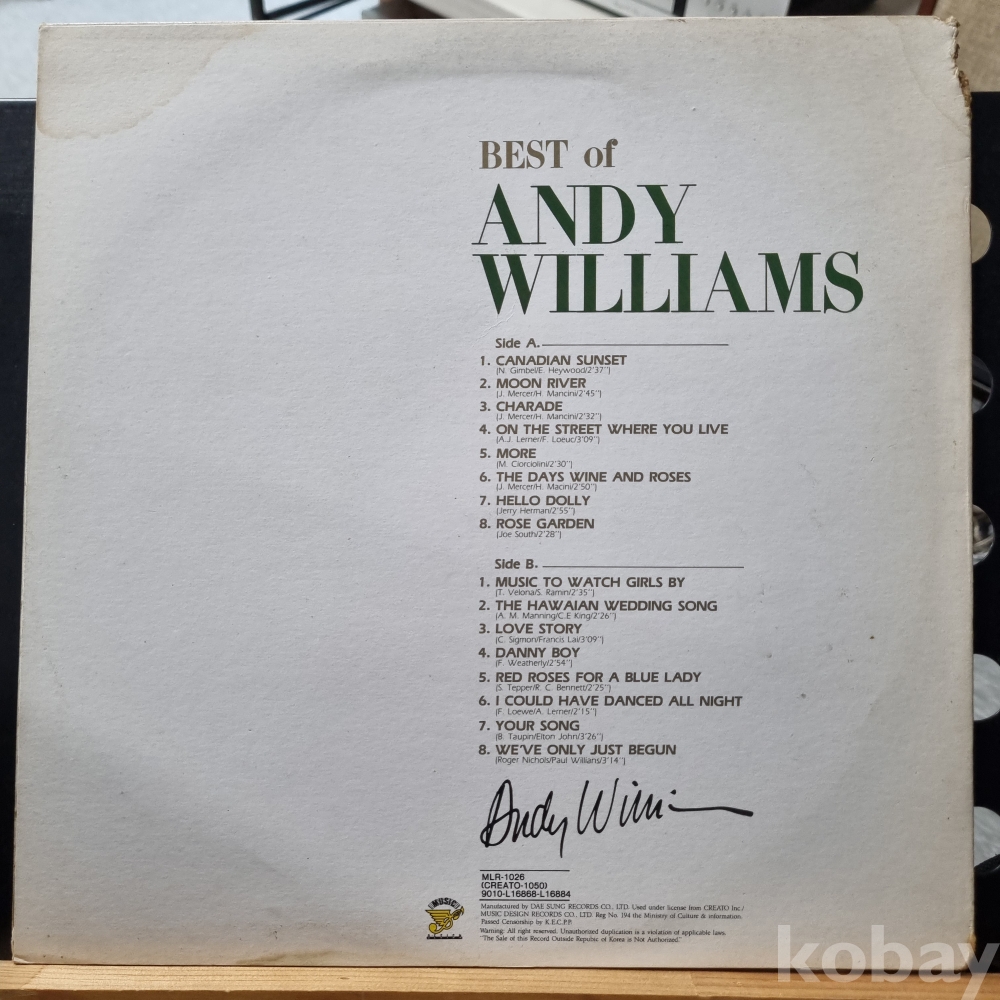 ANDY WILLIAMS BEST [MOON RIVER, LOVE STORY] 1990년 초반