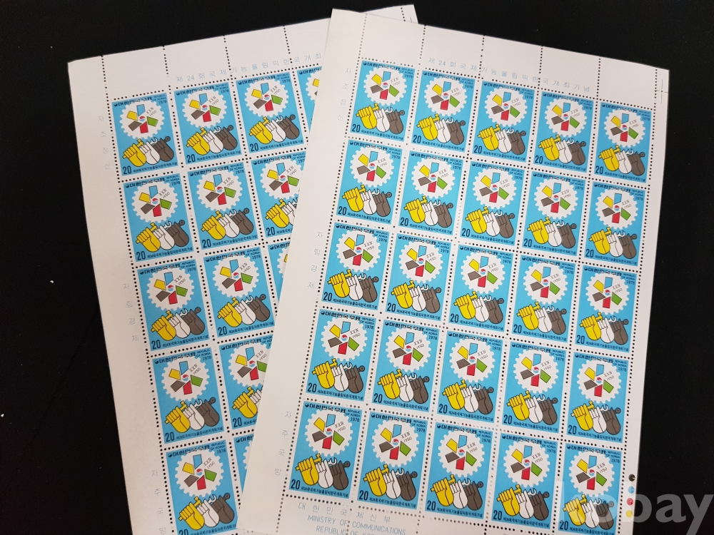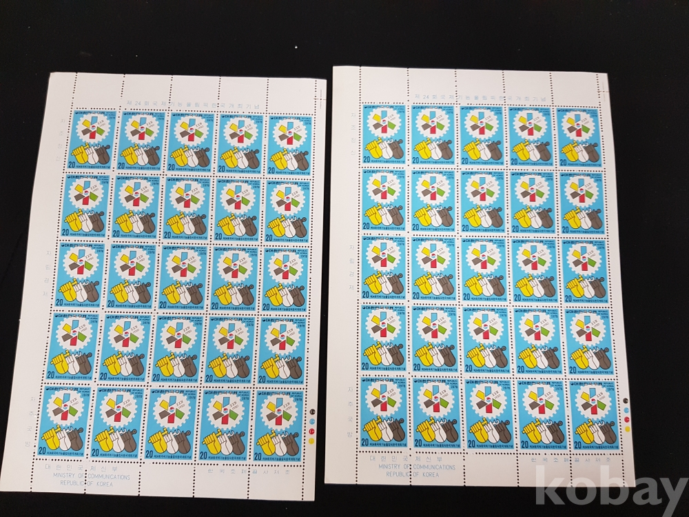 - 미사용 1978년 재 24회 국제기능올림픽 한국개최 기념 전지 2매 일괄