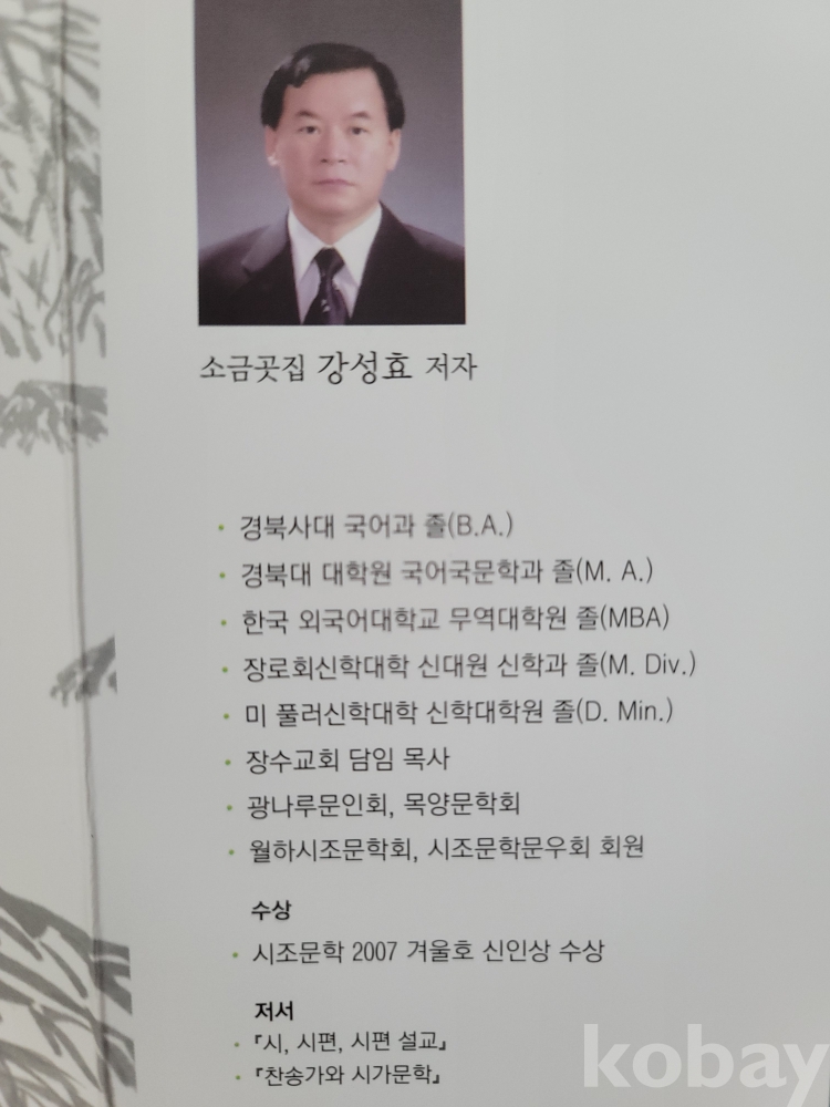 장수교회(경상북도 영주시 장수면 반구로 29–4) 담임 목사로 재직하는 시인.