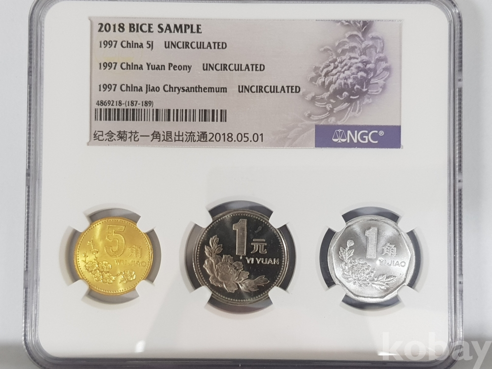 - 1997년 중국 1,5지아오, 2위안 NGC 그레이딩 3종 주화