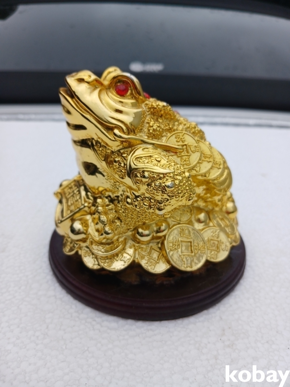 엽전에 둘러 쌓여 있는 금빛 두꺼비 입니다.